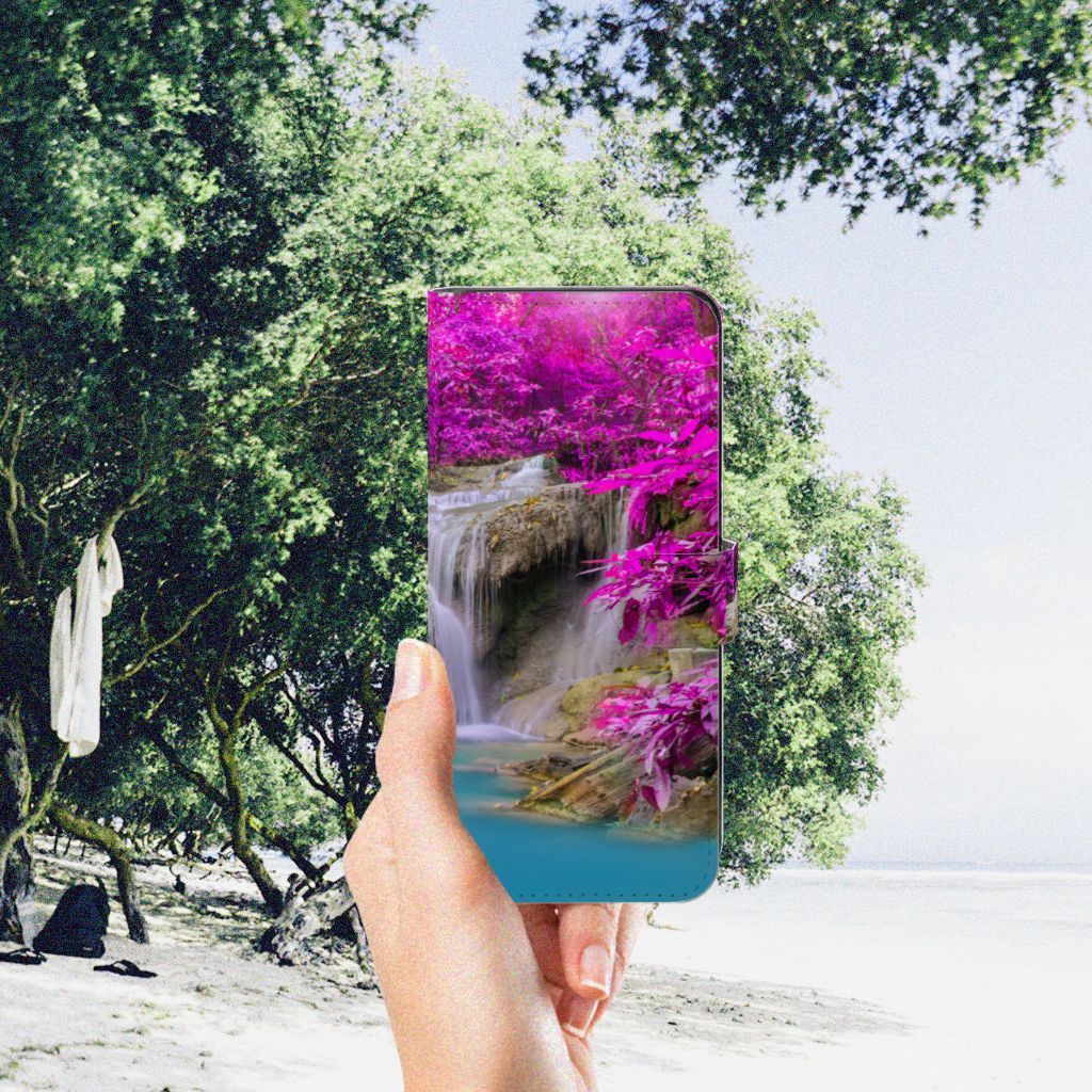 Op deze OPPO A98 5G Flip Cover zie je een kalme waterval en de achtergrond is gevuld met paarse bomen. Samen creëert dit een prachtig en kleurrijk spektakel, iets wat je graag op je OPPO A98 5G hoesje ziet. Wanneer je hiernaar kijkt, word je direct kalm. Als jij je even boos of verdrietig voelt, hoef je alleen maar naar jouw boekhoesje te kijken om weer blij te worden. Ook jouw telefoon zal blij zijn met deze Flip Cover aangezien deze goede bescherming biedt. Als jij je telefoon per ongeluk laat vallen, is er niets aan de hand. Het hoesje zorgt ervoor dat de telefoon intact blijft. Zelfs als hij op het beeldscherm zou vallen, is er dankzij de magnetische sluiting, niets aan de hand.