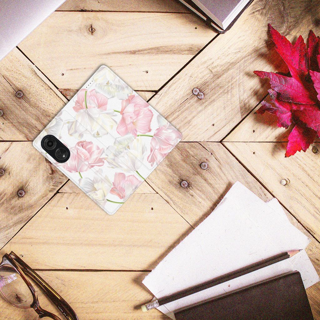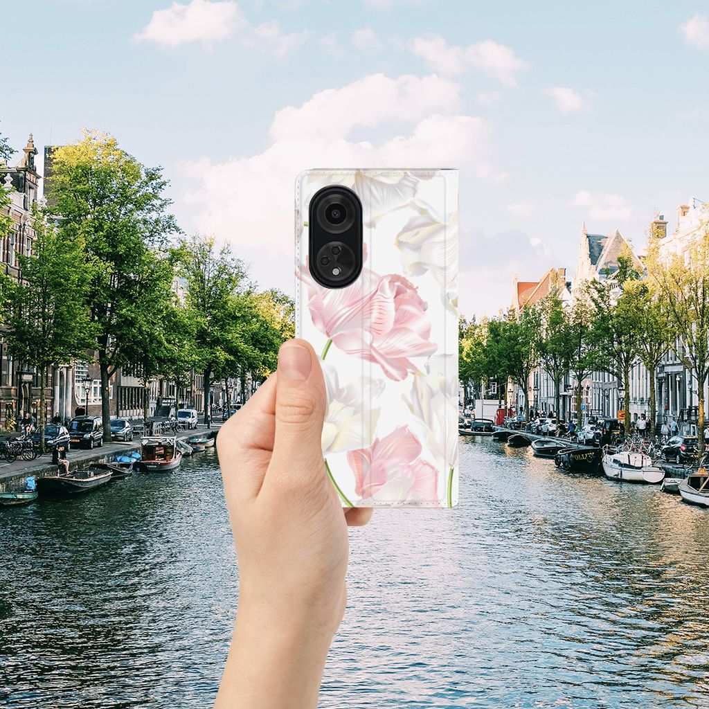 Een bosje bloemen doet een mens (en zijn smartphone) goed. De witte en roze bloemen op dit OPPO A98 5G Smart Cover geven jouw smartphone een zeer mooie uitstraling. Je wordt er ook meteen een stuk rustiger van als je aan het appen of aan het bellen bent. Valt dan je telefoon op de grond, dan zal er dankzij de stand case met het design Lovely Flowers ontstaan. Onze stand cases met roze en witte bloemen zien er zeer prettig uit en zijn heel praktisch, wat blijkt uit onder meer het vakje aan de binnenkant en de handige standaard waarmee je de smartphone rechtop op tafel neer kunt zetten. De roze en witte bloemen passen goed op alle zijden van de case. Op deze stand case van leer en TPU (houder aan de binnenkant) kun je trouwens ook je eigen bloemige ontwerp zetten. In een paar simpele stappen maak je zelf een stand hoesje met daarop jouw mooiste bloemen.