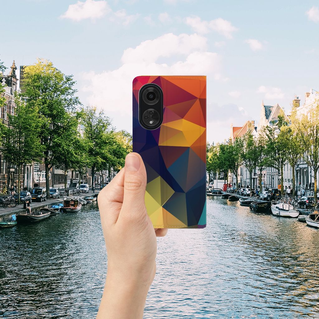 Veelkleurige driehoeken die samen eindeloze asymmetrische patronen lijken te vormen. Het is het abstracte schouwspel dat op dit fraaie hoesje voor je OPPO A98 5G direct de aandacht trekt noemen we voor het gemak trekt noemen we voor het gemak Polygon Color. De een ziet er een berglandschap in, de ander piramides. Wat zie jij erin? Zeker is in elk geval dat de aanblik van dit fascinerende ontwerp je niet snel gaat vervelen. Het kleurige spel van lijnen en vlakken blijft eindeloos boeien en geeft jouw Stand Case een hippe en kunstzinnige uitstraling. De kracht die het lijnenspel uitstraalt, komt ook terug in het hoesje zelf. De solide hoes van PU-leer beschikt ook over een 1 pashouder en een speciale standaard. Het hoesje wordt afgesloten met een magneet aan de binnenzijde. De houder aan de binnenzijde is van TPU. Alle zijden worden bedrukt.