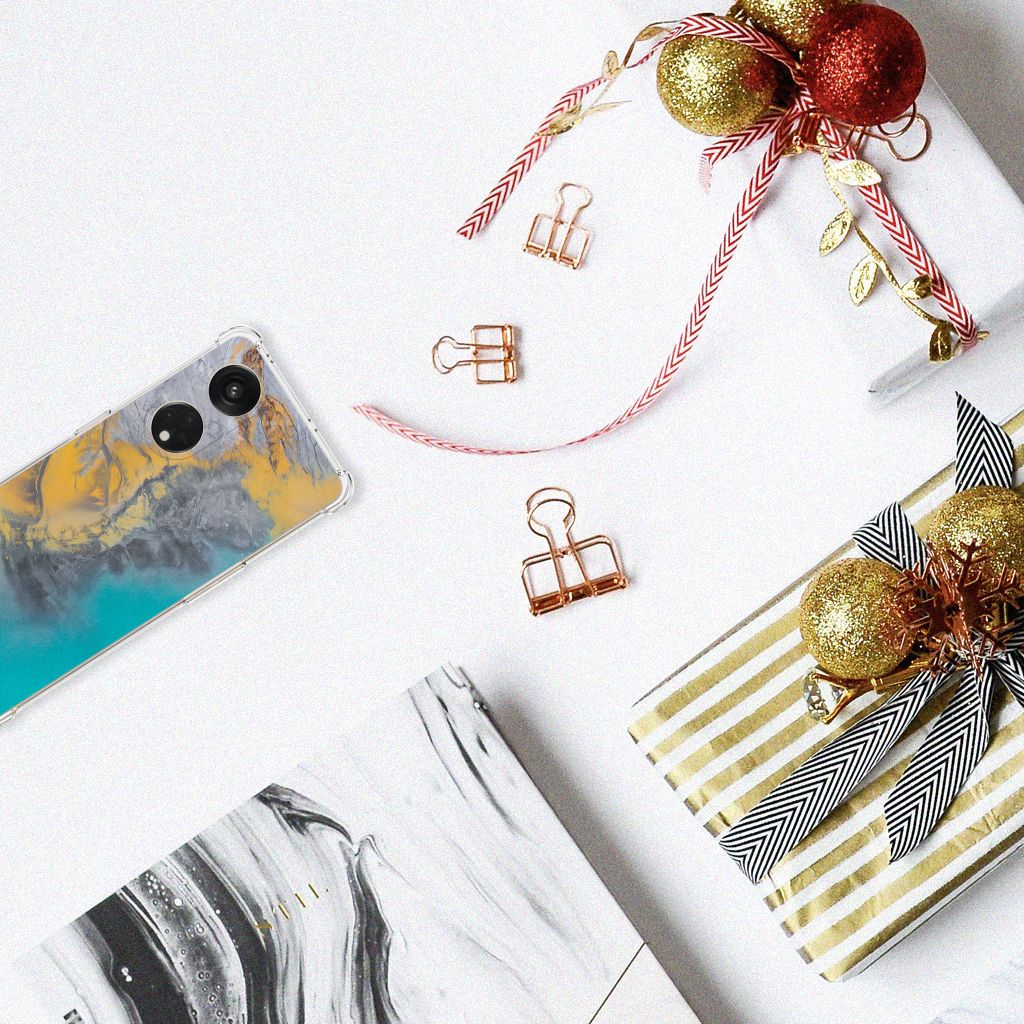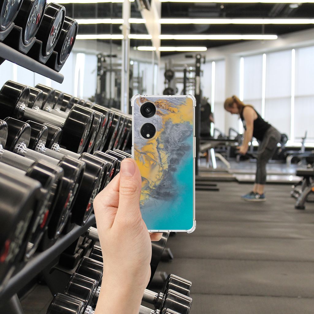 Ben je op zoek naar een uniek telefoonhoesje voor je OPPO A98? Dan ben je bij B2C Telecom aan het juiste adres! Speciaal voor jou hebben we dit prachtige Marble Blue Gold design in onze collectie hoesjes opgenomen. Het design wordt bedrukt op een Anti-Shock Hoesje en is gemaakt van flexibel rubber. Het hoesje is perfect voor de actieve smartphonegebruiker door de opstaande randen/hoeken. Denk aan mensen die veel sporten, reizen of wandelen en net iets meer zekerheid willen als het op hun geliefde telefoon aankomt. Het design wordt alleen aan de bovenkant van het hoesje bedrukt en de randen blijven transparant. Aan de zijkanten zijn uitsparingen gemaakt waardoor je met gemak alle knoppen en poorten kunt bedienen. Wij adviseren om dit hoesje in combinatie met een screenprotector te gebruiken voor een langere levensduur van je telefoon. Wil je dit hoesje nog iets extra's geven? Voeg dan gratis je naam of een quote toe! Is dit design hoesje toch niet helemaal wat je zocht? Ontwerp dan zelf een hoesje in ons ontwerpprogramma.