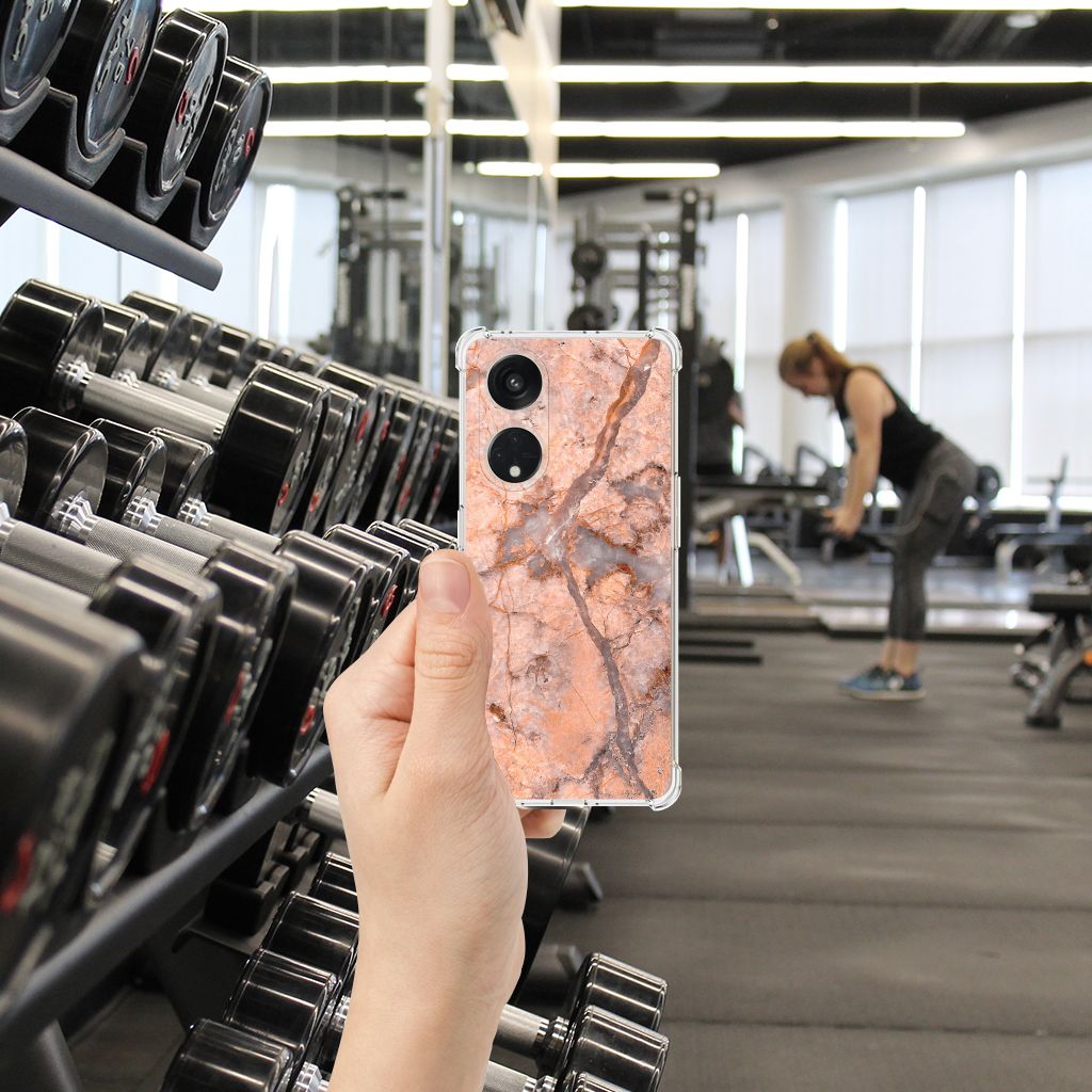 Ben je op zoek naar een uniek telefoonhoesje voor je OPPO A98? Dan ben je bij B2C Telecom aan het juiste adres! Speciaal voor jou hebben we dit prachtige Marmer Oranje design in onze collectie hoesjes opgenomen. Het design wordt bedrukt op een Anti-Shock Hoesje en is gemaakt van flexibel rubber. Het hoesje is perfect voor de actieve smartphonegebruiker door de opstaande randen/hoeken. Denk aan mensen die veel sporten, reizen of wandelen en net iets meer zekerheid willen als het op hun geliefde telefoon aankomt. Het design wordt alleen aan de bovenkant van het hoesje bedrukt en de randen blijven transparant. Aan de zijkanten zijn uitsparingen gemaakt waardoor je met gemak alle knoppen en poorten kunt bedienen. Wij adviseren om dit hoesje in combinatie met een screenprotector te gebruiken voor een langere levensduur van je telefoon. Wil je dit hoesje nog iets extra's geven? Voeg dan gratis je naam of een quote toe! Is dit design hoesje toch niet helemaal wat je zocht? Ontwerp dan zelf een hoesje in ons ontwerpprogramma.
