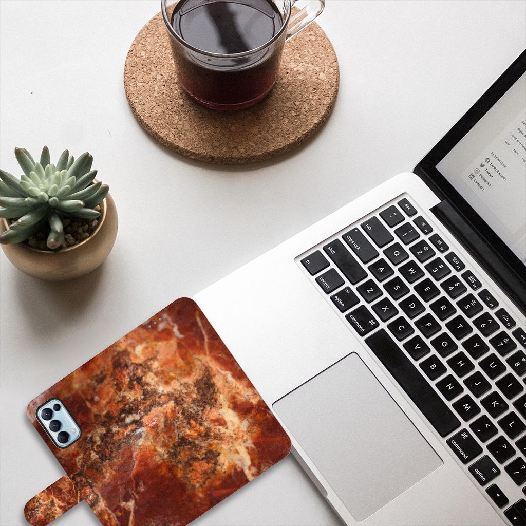 OPPO Find X3 Lite Bookcase met pasjes Marmer Bruin