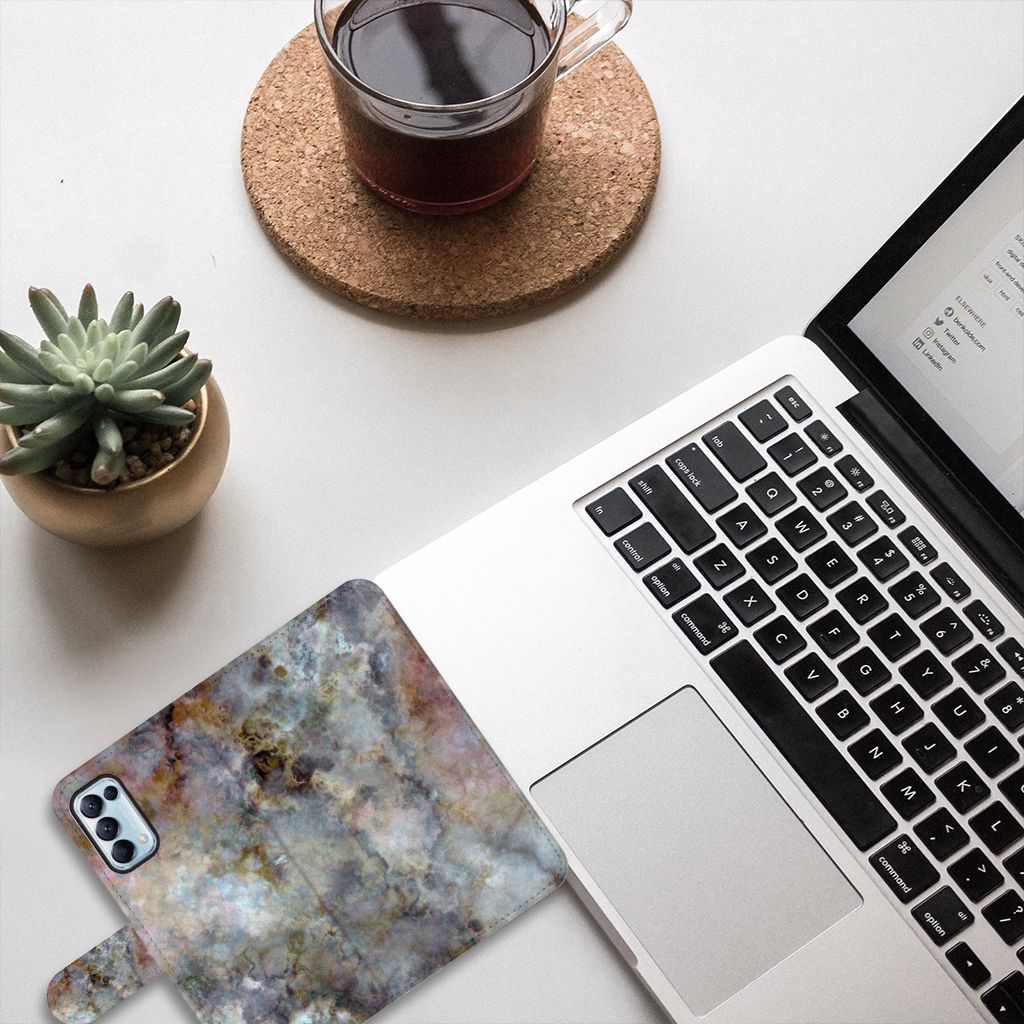 OPPO Find X3 Lite Bookcase met ruimte voor 3 pasjes Marmer Grijs