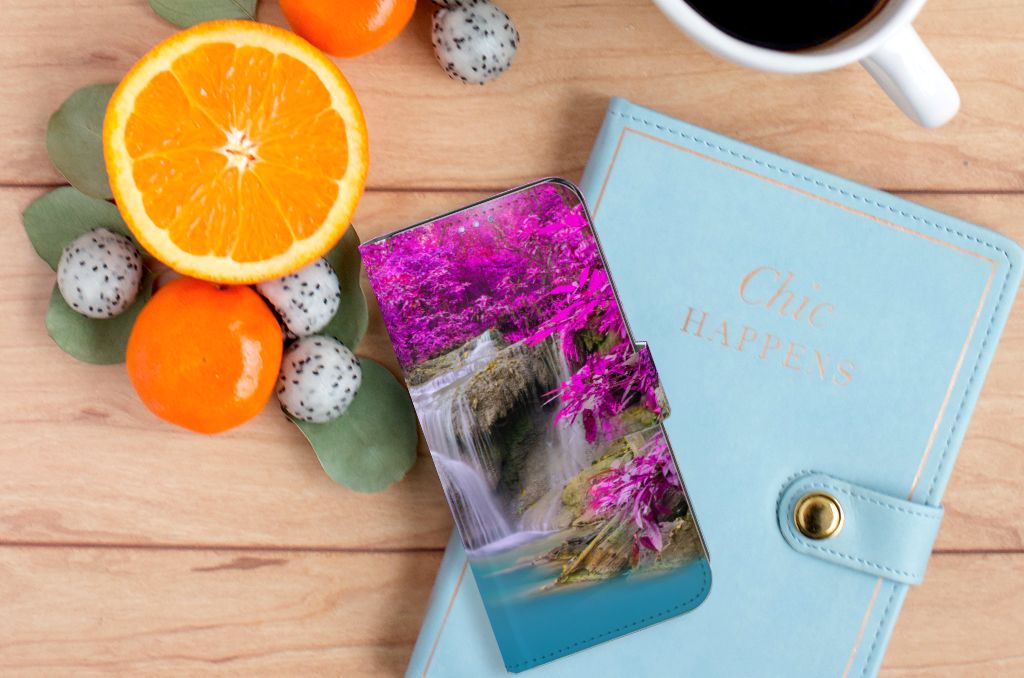 Op deze OPPO Find X3 Lite Flip Cover zie je een kalme waterval en de achtergrond is gevuld met paarse bomen. Samen creëert dit een prachtig en kleurrijk spektakel, iets wat je graag op je OPPO Find X3 Lite hoesje ziet. Wanneer je hiernaar kijkt, word je direct kalm. Als jij je even boos of verdrietig voelt, hoef je alleen maar naar jouw boekhoesje te kijken om weer blij te worden. Ook jouw telefoon zal blij zijn met deze Flip Cover aangezien deze goede bescherming biedt. Als jij je telefoon per ongeluk laat vallen, is er niets aan de hand. Het hoesje zorgt ervoor dat de telefoon intact blijft. Zelfs als hij op het beeldscherm zou vallen, is er dankzij de magnetische sluiting, niets aan de hand.