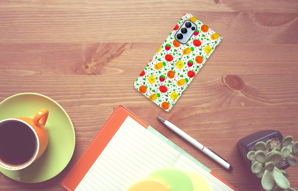 Een fris, fruitig en vrolijk hoesje, deze case met afbeeldingen van aardbeien, ananassen, appels, sinaasappels en citroenen. Minstens twee stuks fruit per dag wordt aanbevolen als dagelijkse hoeveelheid voor de mens. Dit verkleint de kans op allerlei ziekten. Dus met het aantal stukken fruit op de OPPO Find X3 Lite Flip Style Cover zou je wel een maandje zoet moeten zijn. Met het hoesje zelf kun je je hele leven doen, dit is namelijk niet stuk te krijgen. Dit komt door het sterke en flexibele materiaal waarvan het gemaakt is. De vrolijk stemmende case het desing Fruits maakt jouw telefoon dus zeer duurzaam. Zorg ervoor dat jouw smartphone gezond blijft en kies voor dit hoesje met frivool fruit. Een stand case met fruit beschermt jouw telefoon aan alle kanten en beschikt over een 1 opbergvakje en een speciale standaard. Het hoesje met fruit wordt afgesloten met een magneet aan de binnenzijde. De houder aan de binnenzijde is van TPU.