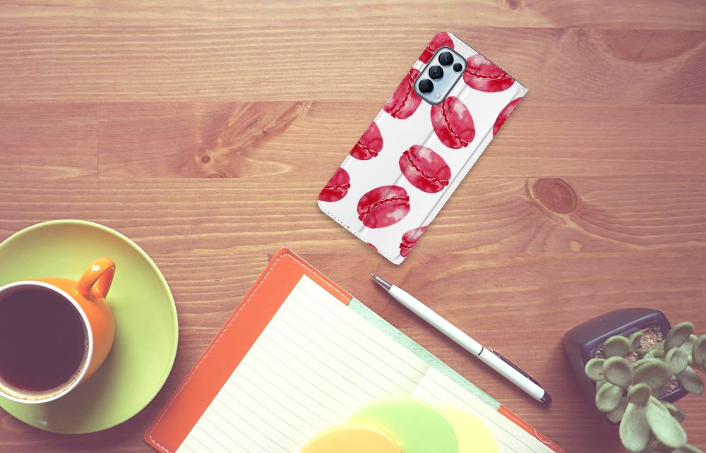 Dit stand hoesje met Pink Macarons is een zeer opvallende bescherming voor jouw smartphone. Macarons zijn Franse koekjes: kleine, rond en luchtig. Ze worden in veel verschillende smaken gemaakt, herkenbaar aan de verschillende kleuren zoals chocolade (donkerbruin), mokka (middenbruin), kersen (rood), pistache (groen), aardbei (roze), framboos (karmijn). Deze kleuren kun je net allemaal zien op dit fraaie design hoesje met roze macarons. Heb je altijd al een OPPO Find X3 Lite Flip Style Cover willen hebben met roze macarons? Grijp dan nu je kans. Deze case heeft zeer veel goede eigenschappen, zoals 1 opbergvakje en een magnetische sluiting aan de binnenkant. Dit design hoesje met roze macarons wordt aan alle zijden bedrukt. De houder aan de binnenkant van het hoesje is van TPU. De case heeft ook een handige standaard.