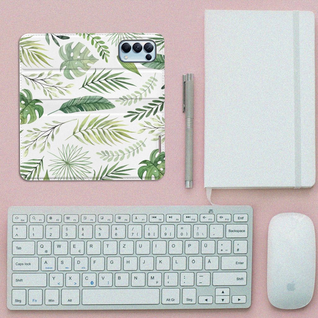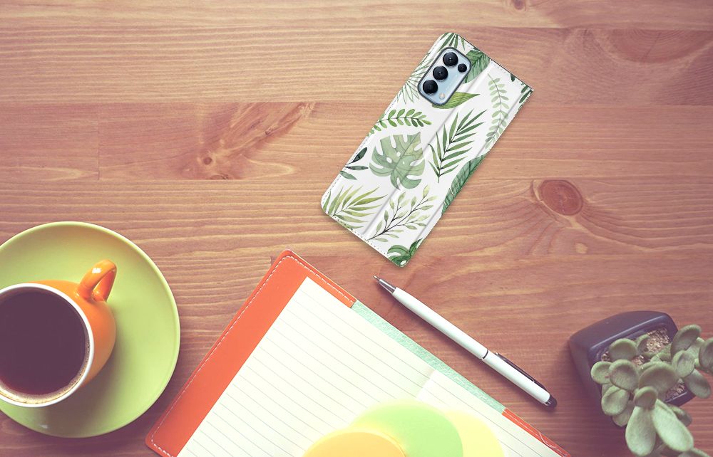 Je voelt je verbonden met de natuur als je kiest voor deze OPPO Find X3 Lite Smart Cover met print Leaves. De print bestaat uit verschillende groene bladeren en dit zorgt voor een fraai decoratief geheel. Met dit patroon van groene bladeren creëer je een frisse uitstraling voor jouw smartphone. Jij doet er verstandig aan om je telefoon te beschermen met dit design hoesje met groene bladeren, die staan op een stand case. Dit hoesje kenmerkt zich onder meer door het handige vakje aan de binnenzijde en de magnetische sluiting aan de binnenzijde. Voel jij jezelf gezond met een beeld van groene bladeren, dan is deze stand case met print een uitstekende optie. Het beschermt jouw telefoon aan alle zijden. Het TPU aan de binnenzijde klemt zich perfect om jouw smartphone. Kijk ook eens naar onze andere hoesjes met bladeren of misschien maak je zelf wel gewoon liefst je eigen hoesje met eigen foto’s van bladeren.