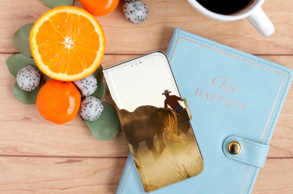 Voor de paardenliefhebbers onder ons hebben we onze collectie uitgebreid met dit design hoesje met print van een cowboy met paarden. Vroeger hield de mens vooral werkpaarden, inmiddels hebben we vriendschap gesloten met het paard. Vandaar dat het ook een favoriet dier is op onze smartphonehoesjes, zoals deze boekhoesjes. Dit Telefoonhoesje met Pasjes met paarden is niet alleen super mooi en chique, het sluit ook nog perfect dankzij het lipje aan de buitenzijde. Verder heeft de case een TPU houder aan de binnenzijde en houders voor pasjes en briefgeld. Zie je liever je eigen paard terug op een hoesje voor jouw OPPO Find X3 Lite? Dat kan! Door zelf een uniek hoesje te ontwerpen, met eigen foto’s en teksten. Het boekhoesje met paarden wordt aan alle zijden bedrukt.