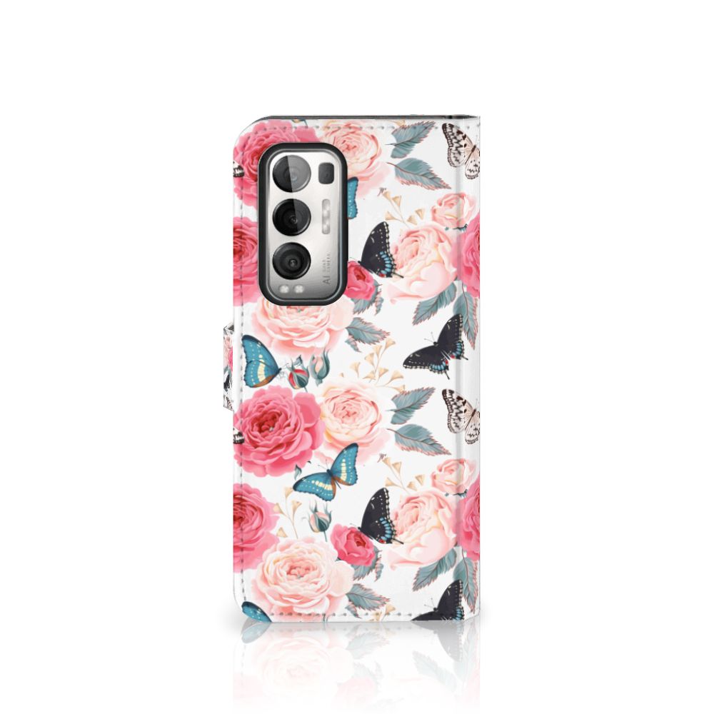 OPPO Find X3 Neo 5G Hoesje gemaakt van TPU en kunstleer Butterfly Roses