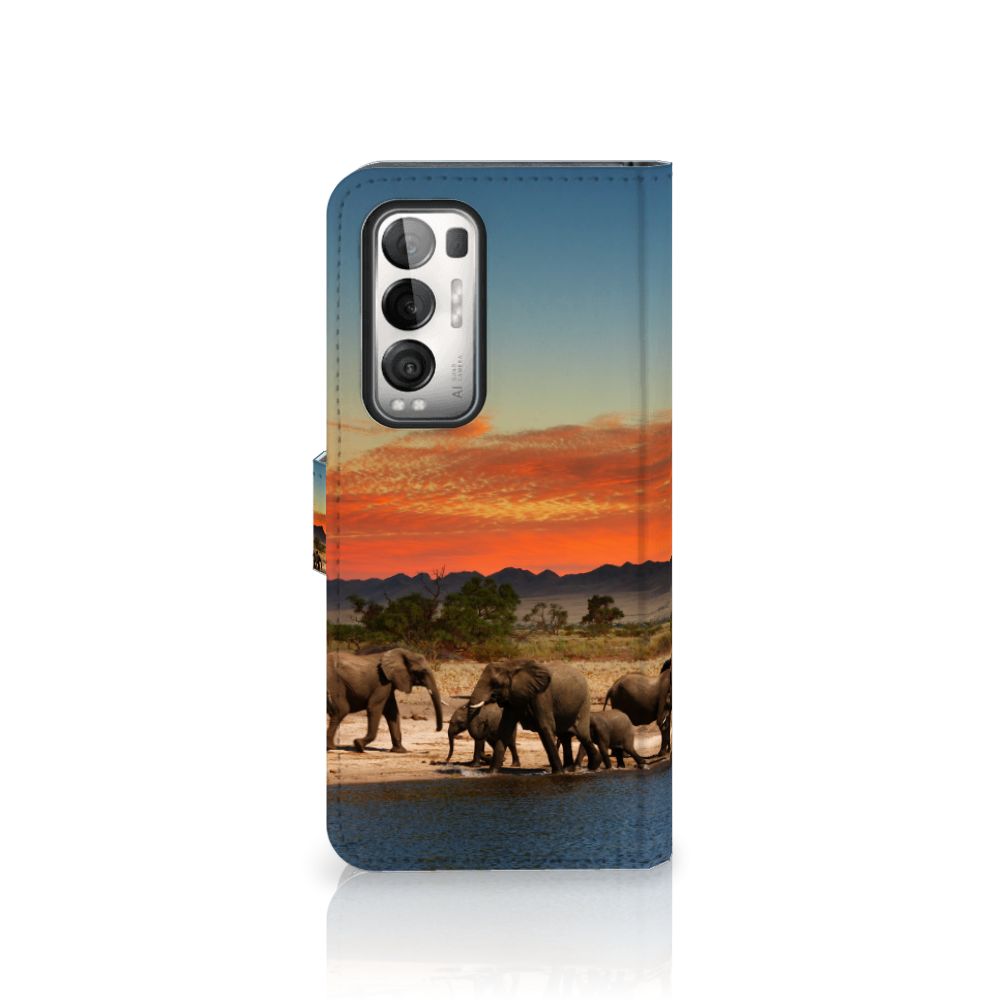 OPPO Find X3 Neo 5G Telefoonhoesje met ruimte voor 3 pasjes Olifanten