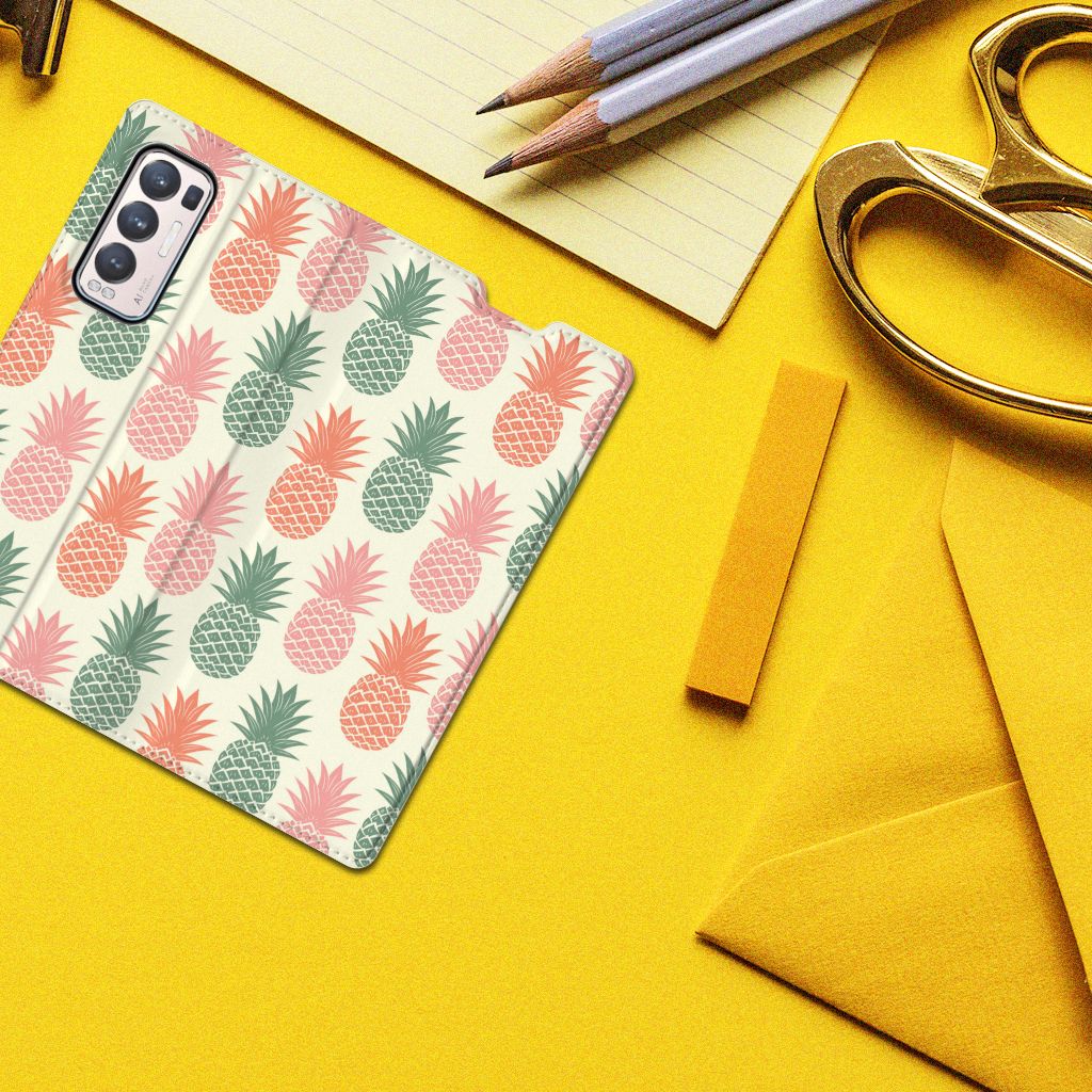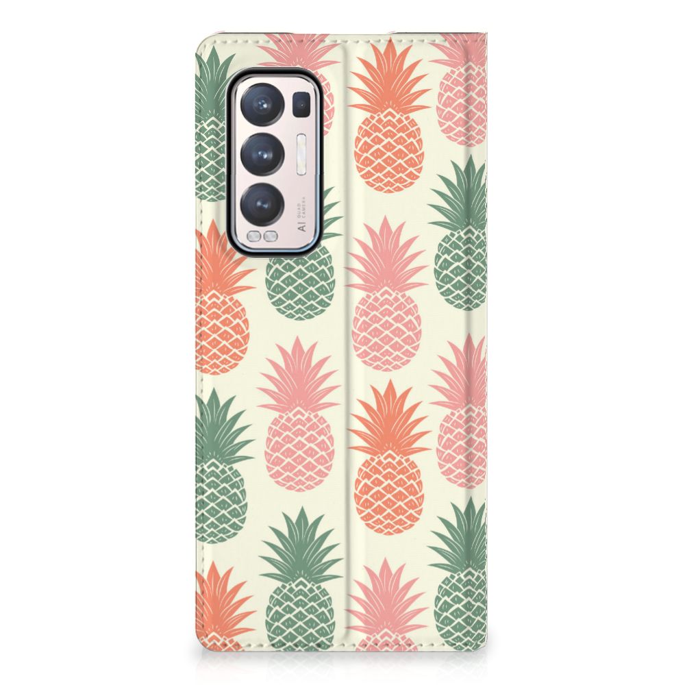 Ananas is een woord uit het Tupi, de taal van de Tupi-indianen, en betekent uitmuntende vrucht. Dit fruit van zeer hoge kwaliteit staat op onze superieure boekhoesjes, stand cases, hard cases en TPU cases. Jij blijft er gezond uitzien als je zo nu en dan een hap neemt van een Ananas , jouw smartphone blijft tip top in orde als je er een leuk telefoonhoesje omheen doet. Een ananas heeft stevig, veerkrachtig vruchtvlees. Een beetje te vergelijken met het TPU in onze hoesjes. TPU is elastisch materiaal, dat zeer buigzaam is. Vandaar dat het zeer schokbestendig is. Het ananas design staat op een stand case. Deze OPPO Find X3 Neo Flip Style Cover beschermt jouw telefoon aan alle kanten en beschikt over een 1 opbergvakje en een speciale standaard. Het hoesje wordt afgesloten met een magneet aan de binnenzijde. De houder aan de binnenzijde is van TPU.