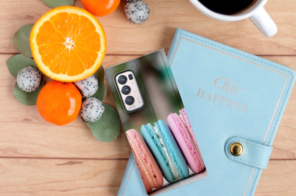 Dit stand hoesje met macarons is een zeer opvallende bescherming voor jouw smartphone. Macarons zijn Franse koekjes: kleine, rond en luchtig. Ze zijn aan elkaar geplakt met een zachte vulling. Ze worden in veel verschillende smaken gemaakt, herkenbaar aan de verschillende kleuren zoals chocolade (donkerbruin), mokka (middenbruin), kersen (rood), pistache (groen), aardbei (roze), framboos (karmijn), citroen (geel) en kokos (roomwit). Deze kleuren kun je natuurlijk ook zien op dit fraaie design hoesje met macarons. Heb je altijd al een OPPO Find X3 Neo Flip Style Cover willen hebben met macarons? Grijp dan nu je kans. Deze case heeft zeer veel goede eigenschappen, zoals 1 opbergvakje en een magnetische sluiting aan de binnenkant. Dit design hoesje met macarons wordt aan alle zijden bedrukt. De houder aan de binnenkant van het hoesje is van TPU. De case heeft ook een handige standaard.