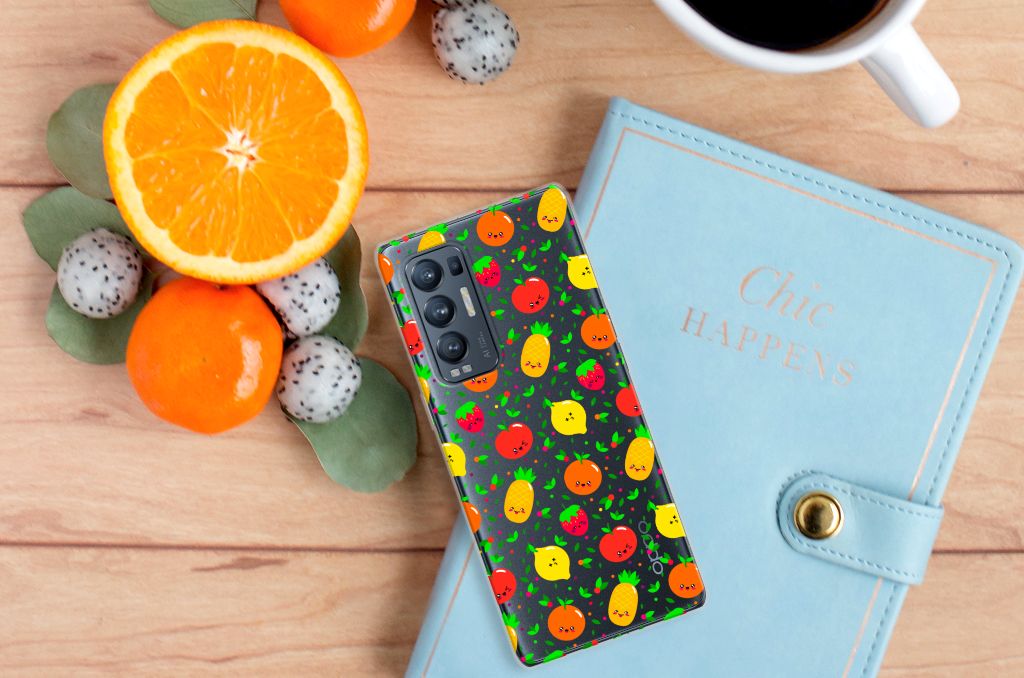 Een fris, fruitig en vrolijk hoesje, deze case met afbeeldingen van aardbeien, ananassen, appels, sinaasappels en citroenen. Minstens twee stuks fruit per dag wordt aanbevolen als dagelijkse hoeveelheid voor de mens. Dit verkleint de kans op allerlei ziekten. Dus met het aantal stukken fruit op de OPPO Find X3 Neo Siliconen Case zou je wel een maandje zoet moeten zijn. Met het hoesje zelf kun je je hele leven doen, dit is namelijk niet stuk te krijgen. Dit komt door het sterke en flexibele materiaal waarvan het gemaakt is. De vrolijk stemmende case het desing Fruits maakt jouw telefoon dus zeer duurzaam. Zorg ervoor dat jouw smartphone gezond blijft en kies voor dit hoesje met frivool fruit. Een tpu case met fruit wordt alleen aan de bovenkant bedrukt en is zeer flexibel. De randen van het hoesje blijven transparant en worden niet bedrukt met het fruit.