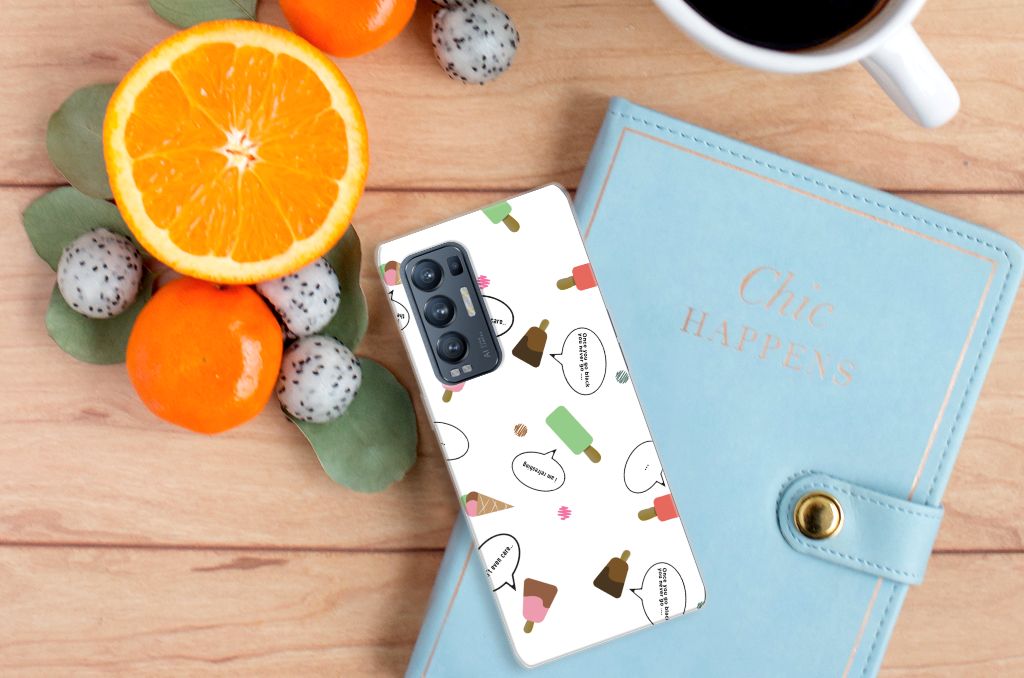 Van deze vrolijke OPPO Find X3 Neo Siliconen Case met daarop verschillende soorten ijsjes met tekstwolkjes krijg je sowieso een vrij en zomers gevoel. De zomer komt naar je toe met deze print van ijsjes met tekstwolkjes. Ben je op het strand, dan ontbreekt een lekker ijsje natuurlijk niet. Net zoals je je smartphone bij de hand hebt, met daaromheen een design hoesje met bijzondere ijsjes en tekstwolkjes. Jouw telefoon kan dan de bescherming in de vorm van een tpu hoesje met ijsjes zeer goed gebruiken. De bovenkant van dit hoesje wordt bedrukt met ijsjes en tekstwolkjes, de zijkanten blijven doorzichtig. De case is gemaakt van schokabsorberend materiaal en past altijd in je broekzak. Onder alle weersomstandigheden zal deze TPU case perfect functioneren, ook in de zomer met een ijsje in je hand.