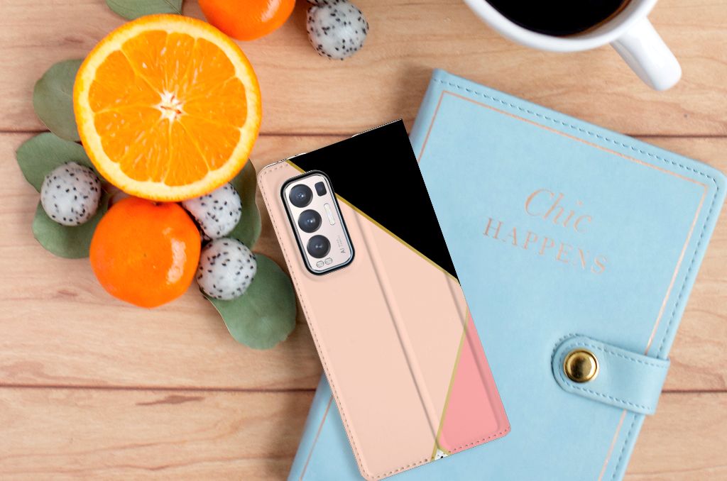 OPPO Find X3 Neo Print Stand Case Zwart Roze Vormen