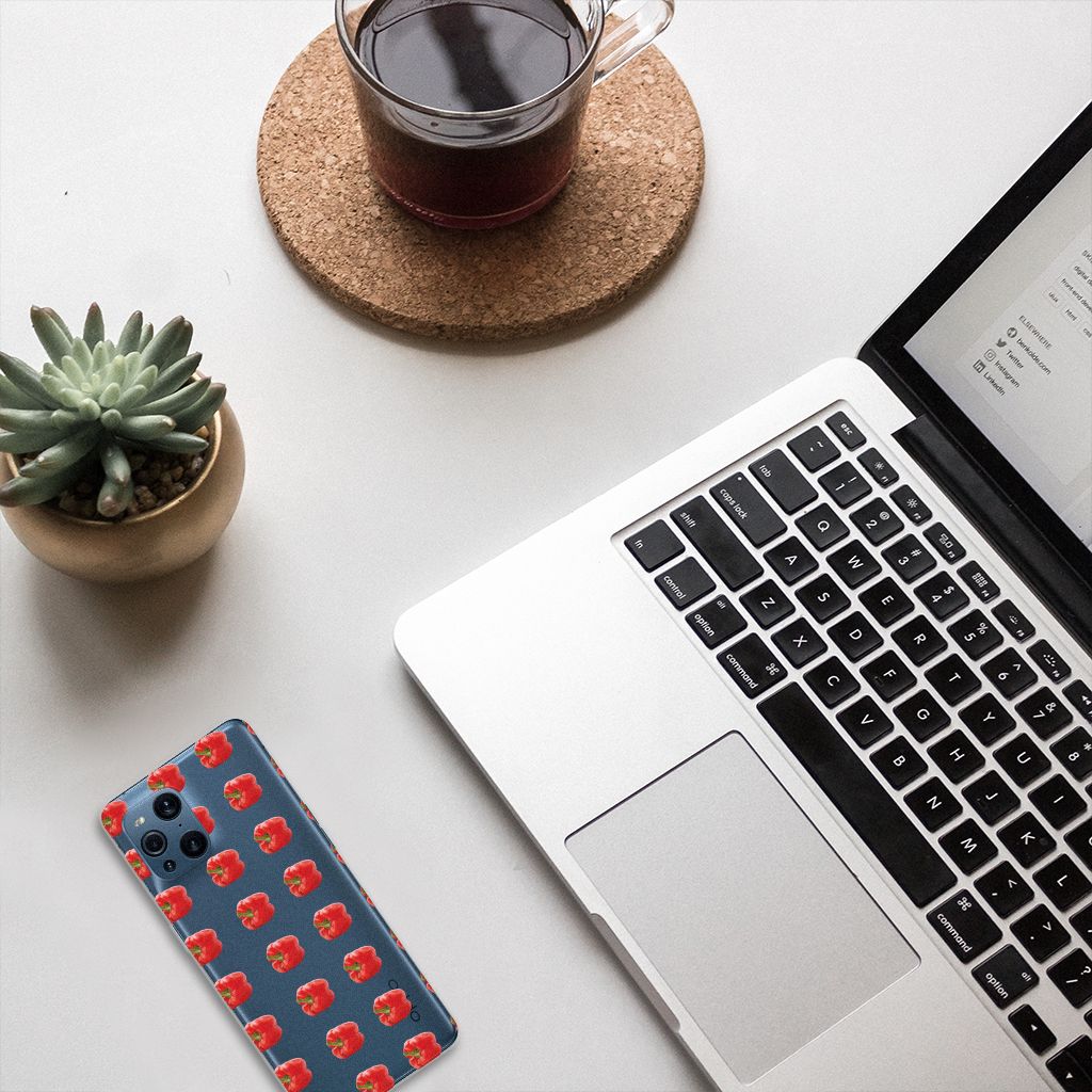 Er zit pit in jouw OPPO Find X3 | X3 Pro Siliconen Case dankzij dit design met rode paprika’s. Paprika’s zijn er in allerlei kleuren en vormen en ze hebben gemeen dat ze heel erg gezond zijn. De rode paprika’s op deze case staan op een grijs met witte geblokte achtergrond en vormen een opvallende verschijning. Heb jij ooit iemand in je nabije omgeving rond zien lopen met een design hoesje met rode paprika’s? Waarschijnlijk niet. Dit hoesje wordt alleen aan de bovenkant bedrukt met paprika’s en is zeer flexibel. De randen van het hoesje blijven transparant en worden niet bedrukt. Met dit hoesje past jouw telefoon altijd in je broekzak. Zeker weten dat je met dit hoesje met rode paprika’s een smartphone accessoire te pakken hebt waarmee je jezelf in de schijnwerpers zet. Als je andere kleuren paprika’s op je hoesje wilt, raden we je aan ons assortiment design hoesjes te bekijken of zelf een hoesje te ontwerpen.