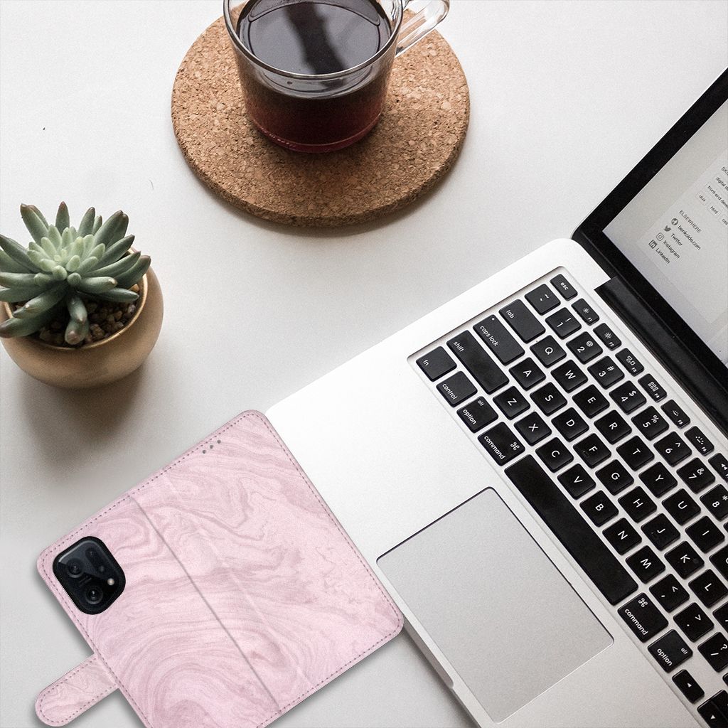 OPPO Find X5 Bookcase met magnetische sluitclip Marble Pink