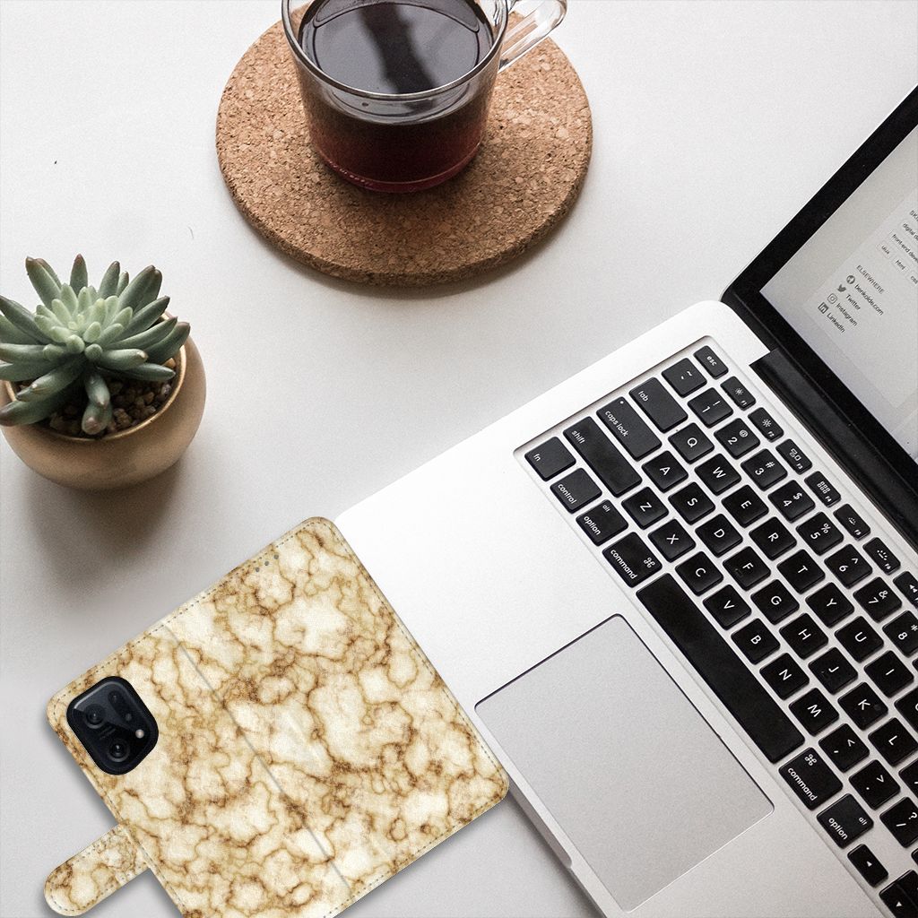 Dit OPPO Find X5 Bookcase met Marmer Goud is het waard om een blokje voor om te rijden. Dit is overigens niet nodig. Als je het hoesje met goud marmer nu bestelt heb je het zeer snel in huis. Je kunt er bij wijze van spreken thuis op gaan zitten wachten. Je hebt diverse soorten marmer. We hebben enkele fraaie kleuren op onze hoesjes gezet, zoals in dit geval het gouden marmer. Het marmer wordt bedrukt op alle zijden van het boekhoesje, dat beschikt over vakjes voor pasjes en briefgeld en een magnetisch lipje aan de buitenzijde. Verder heeft de case met marmer met goud een houder van TPU. De rijkheid aan kleuren en varianties in afwerking is een fraaie eigenschap van marmer. Dit boekhoesje met marmer goud heeft ook veel schitterende eigenschappen en is de ideale bescherming voor jouw smartphone.