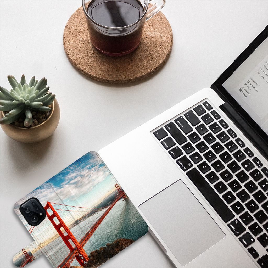 De Golden Gate Bridge is een technisch meesterwerk. Een van de langste en hoogste hangbruggen ter wereld is een schitterend staaltje van ingenieurskunst en een prachtig monument, dat met de rode kleur fel afsteekt tegen de omgeving. Dit monument komt op een fraaie manier tot uitdrukking op een OPPO Find X5. Het telefoonhoesje met design heeft verschillende vakjes, waarin je pasjes en briefgeld kunt stoppen. Jouw telefoon past precies in de houder van TPU. De Golden Gate Bridge is vanuit vele plekken in en rond San Francisco op een spectaculaire manier zichtbaar. Een deel van de brug komt ook op het lipje te staan, dat jouw Flip Cover aan de buitenkant perfect afsluit. Jouw telefoon is dus aan alle kanten beschermd met dit design hoesje met Golden Bridge print. Alle kanten van het telefoonhoesje worden bedrukt met foto’s.