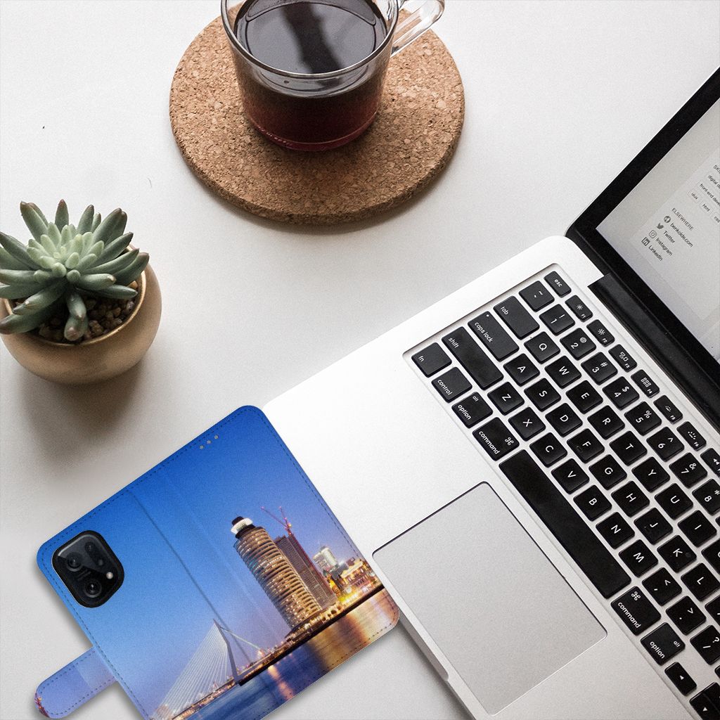 Een hoesje met de Rotterdamse skyline is niet alleen voor de plaatselijke inwoners een bijzonderheid. Ook jij zult glimmen van trots wanneer het gaat over jouw boekhoesje met de Rotterdamse skyline. Sinds 1975 zijn hoogbouw en Rotterdam onlosmakelijk met elkaar verbonden. Dat zie je duidelijk terug als je dit smartphone hoesje koopt. Een OPPO Find X5 Flip Cover is zeer praktisch dankzij de opbergvakjes aan de binnenzijde en het magnetische lipje aan de buitenzijde en beschermt jouw smartphone aan alle zijden. Dankzij het platte Hollandsche landschap zie je de Rotterdamse binnenstad vanuit verschillende posities liggen. Beloon jezelf en je telefoon met dit mooi Rotterdamse boekhoesje. De case heeft een houder van TPU, waar jouw telefoon precies in past.