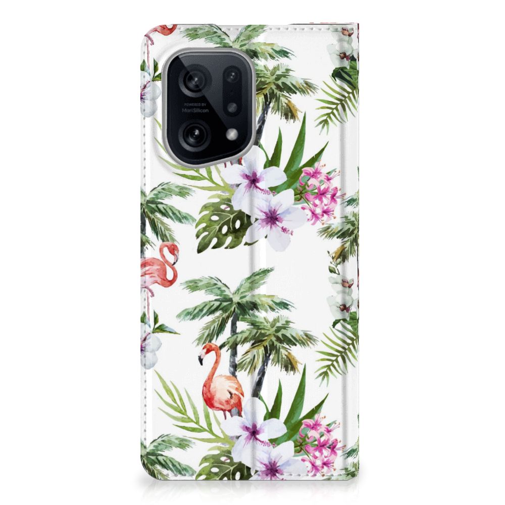 OPPO Find X5 Dierenprint Telefoonhoesje Pauw met Bloemen