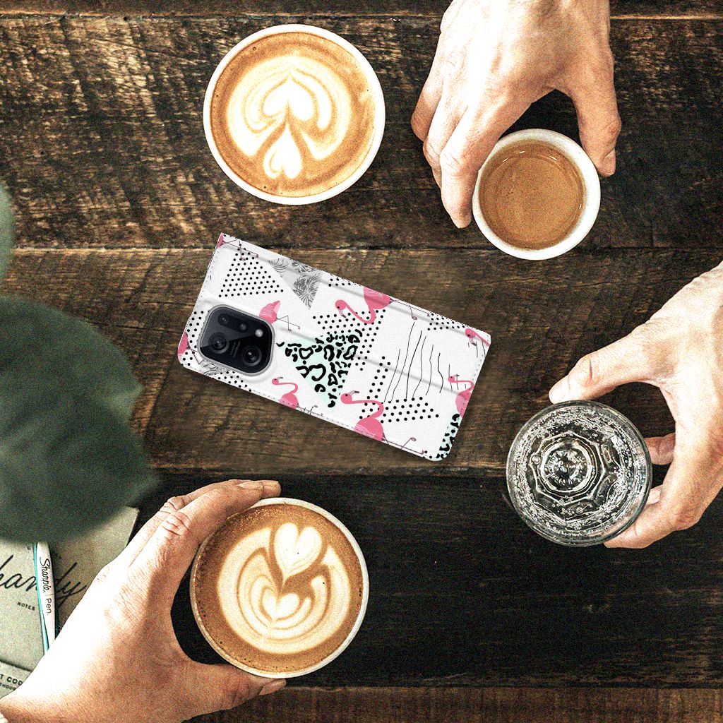 Een OPPO Find X5 Hoesje maken met Flamingo Triangle is in vele opzichten bijzonder. De rode flamingo op het hoesje komt oorspronkelijk uit het Caraïbische gebied. Stel dat je in deze regio vakantie viert, dan val je zonder meer op met dit hoesje met flamingo’s en driehoeken. Deze stand case biedt bescherming voor alle zijden van je telefoon. Jouw smartphone ligt goed opgeborgen in de TPU houder aan de binnenzijde en in dit gedeelte van het hoesje met flamingo’s en driehoeken zit de magnetische sluiting. Ook de palmbomen op deze stand case bieden het ultieme vakantiegevoel. De stand case met flamingo’s en driehoeken heeft vakjes voor pasjes en is op maat gemaakt.