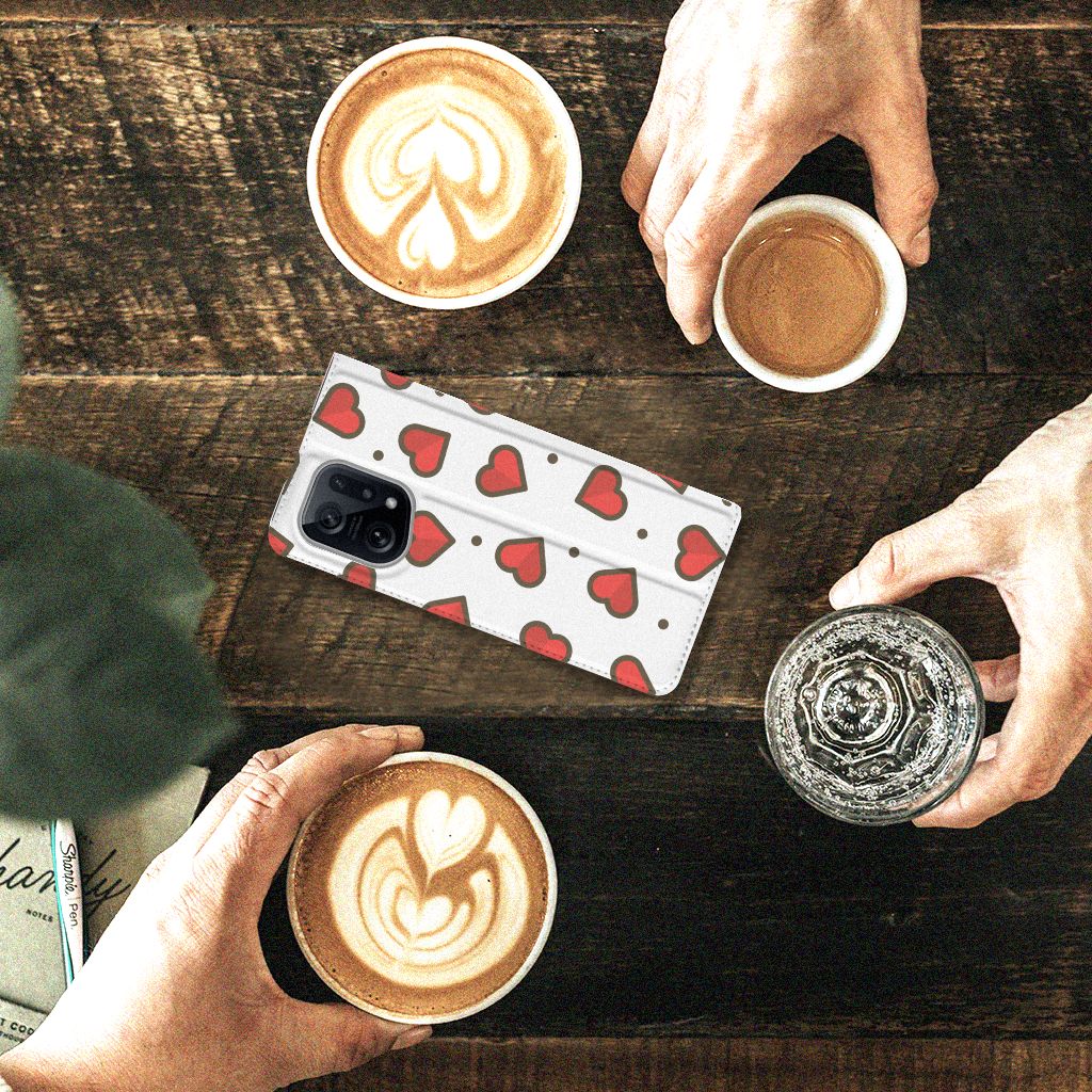 Met deze OPPO Find X5 Hoesje met Magneet met hartjes op een grijs met witte achtergrond maak jij een goede beurt als je dit cadeau geeft aan je vriend of vriendin. Bekroon je liefde voor elkaar met deze hele mooie stand case, die jouw telefoon aan alle zijden beschermt. Dit is echt een prachtige manier om je telefoon te beschermen. Het stand hoesje met design met Hearts is ook nog eens zeer praktisch, mede door het aan de binnenzijde en de standaard. De houder aan de binnenkant is van TPU, dus jouw smartphone kan met dit hoesje met hartjes op een grijs met witte achtergrond geen kant op. Dit is een hoesje om verliefd op te worden. Zonde om dit product aan je voorbij te laten gaan. Waarschijnlijk krijg je er eeuwig spijt van. Voor een habbekrats is dit hoesje met hartjes op een grijs met witte achtergrond te bestellen op onze website.