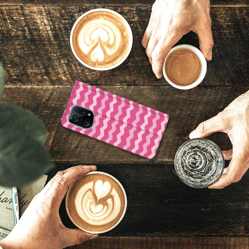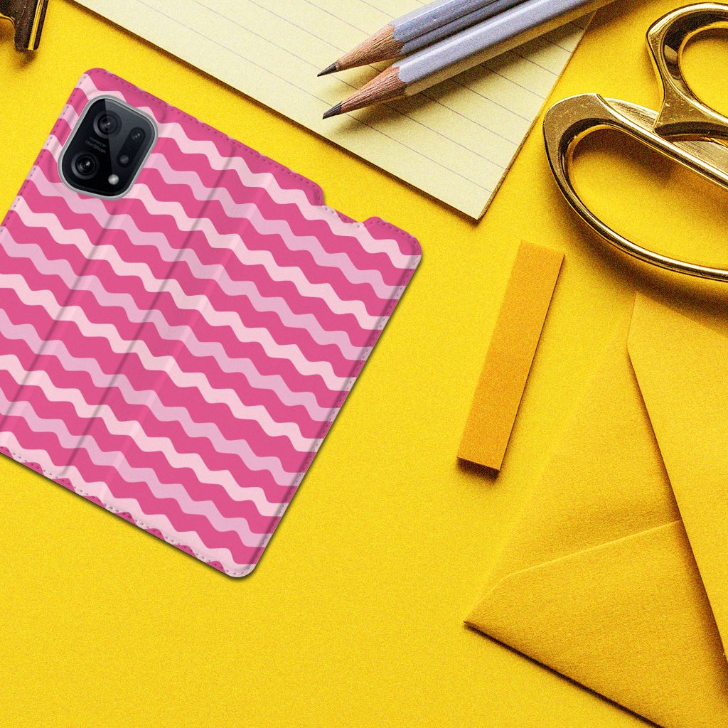 Dit design hoesje met roze golven is speciaal op maat gemaakt voor jouw telefoon. We hebben verschillende kleurstellingen gebruikt in het design, zodat de case er spannend en leuk uitziet. Dit roze hoesje met verschillende soorten golven ziet er opwindend uit. Het OPPO Find X5 Hoesje met Magneet wordt in ons eigen magazijn bedrukt, vandaar dat we de kosten zeer laag kunnen houden. Wij kunnen het duurzame hoesje met Waves Pink zeer snel leveren. Heb jij altijd al een design hoesje met verschillende soorten roze willen hebben? De stand case met roze golven beschermt jouw telefoon aan alle kanten en beschikt over een 1 opbergvakje en een speciale standaard. Het roze hoesje wordt afgesloten met een magneet aan de binnenzijde. De houder aan de binnenzijde van de case in verschillende soorten roze is van het flexibele TPU. Alle zijden van de roze stand case worden bedrukt.