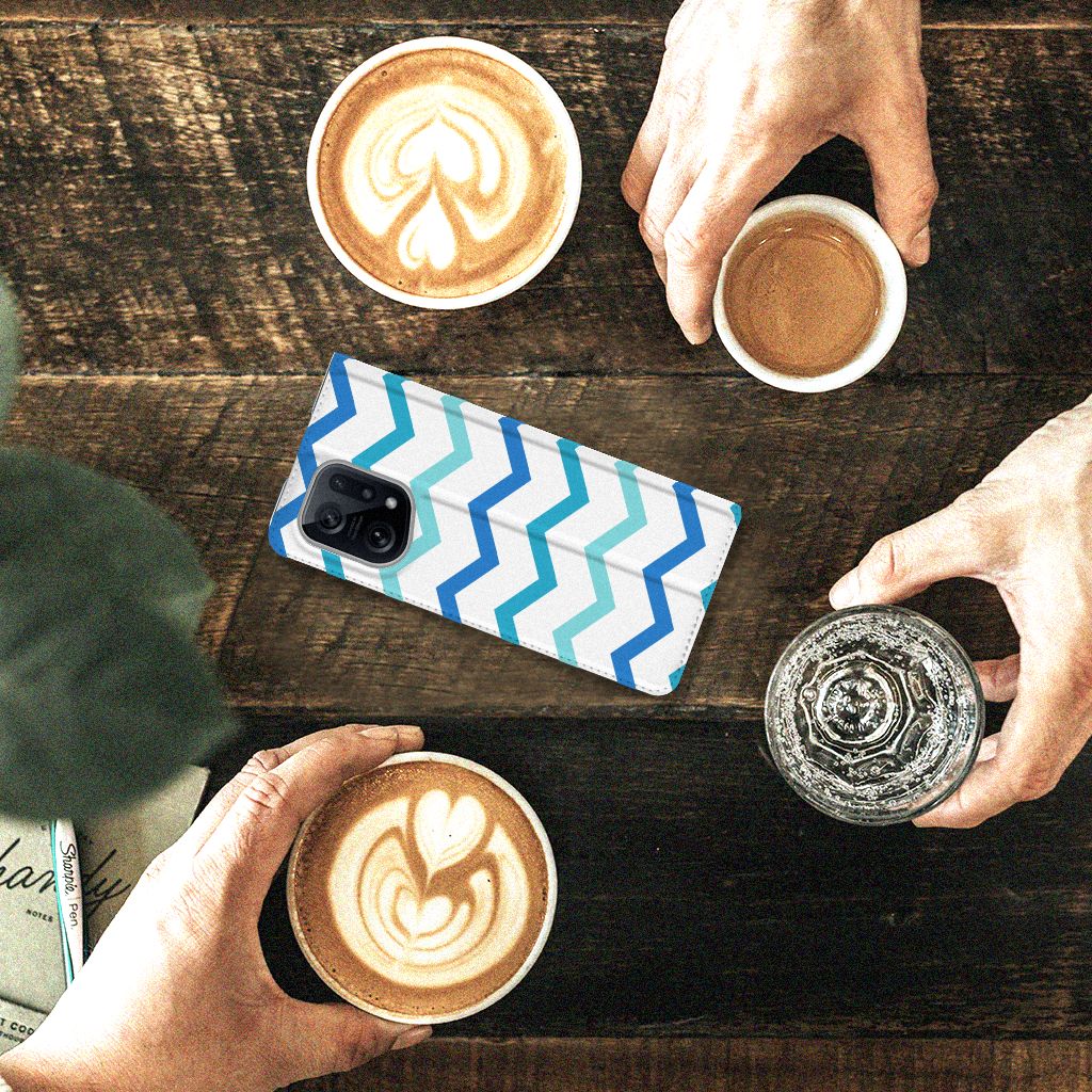 Dit zigzag blauwe design hoesje is speciaal ontworpen voor jou. We hebben bewust verschillende stijlen blauw gebruikt, zodat er voldoende sprake is van variatie. Dit blauwwitte Hoesje met Magneet ziet er super strak uit. Dat kan ook niet anders, als je weet dat onze zeer talentvolle designer er hoogstpersoonlijk voor verantwoordelijk is. Hij schudt wekelijks nieuwe designs uit zijn mouw en dit zigzag blauwe hoesje is een van zijn fraaiste creaties. Een heel dik design hoesje, al zeggen we het zelf. Valt dit blauwwitte design hoesje goed bij jou? Bestel het dan vandaag nog en je hebt het morgen in huis. Het design staat op een stand case. Deze case beschermt jouw OPPO Find X5 aan alle kanten en beschikt over een 1 opbergvakje en een speciale standaard. Het hoesje wordt afgesloten met een magneet aan de binnenzijde. De houder aan de binnenzijde is van TPU. Alle zijden van de stand case worden bedrukt.