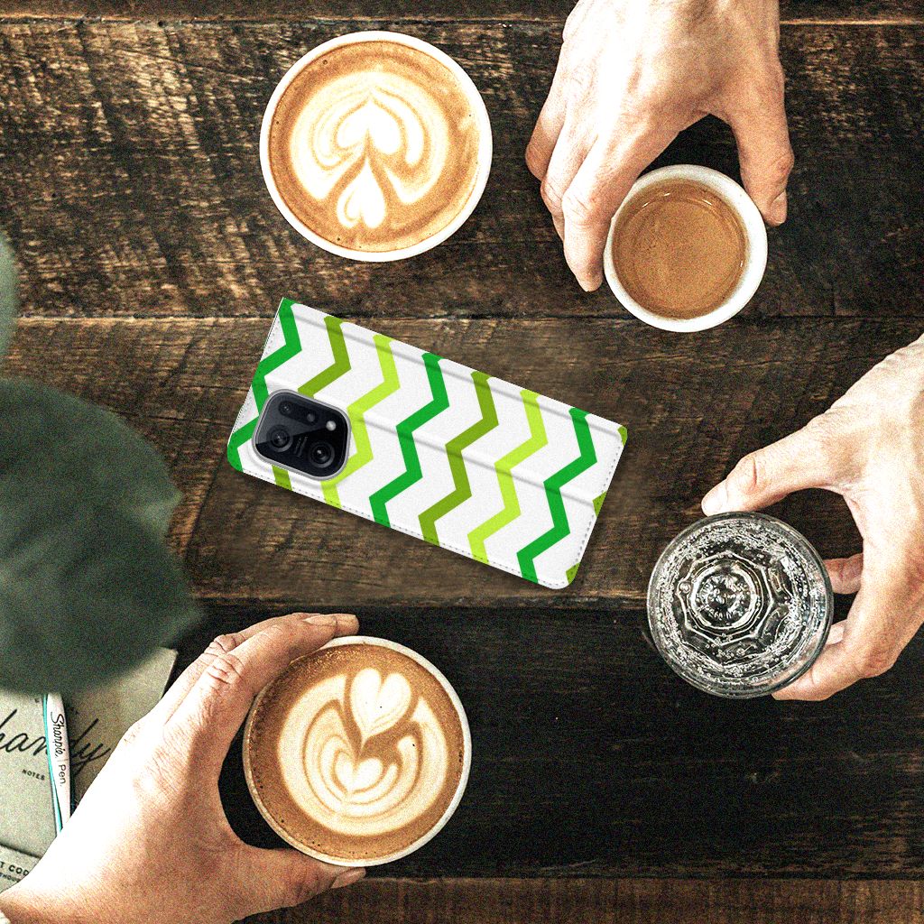 Dit zigzag groen design hoesje is speciaal ontworpen voor jouw telefoon. We hebben bewust verschillende stijlen groen gebruikt, zodat er voldoende sprake is van variatie. Dit groene hoesje ziet er super strak uit. Dat kan ook niet anders, als je weet dat onze designer zijn creativiteit heeft gebruikt. Hij schudt voortdurend nieuwe designs uit zijn mouw en dit zigzag groene hoesje is een van zijn fraaiste creaties. Een heel tof OPPO Find X5 Hoesje met Magneet, al zeggen we het zelf. Valt dit Zigzag Groen design hoesje goed bij jou? Bestel het dan vandaag nog en je hebt het morgen in huis. Het design staat op een stand case. Deze case beschermt jouw telefoon aan alle kanten en beschikt over een 1 opbergvakje en een speciale standaard. Het hoesje wordt afgesloten met een magneet aan de binnenzijde. De houder aan de binnenzijde is van TPU. Alle zijden van de stand case worden bedrukt.