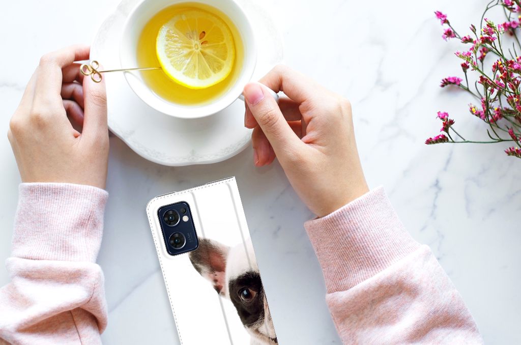 Honden zijn voor veel mensen hun lievelingsdier. Er zijn erg veel verschillende soorten honden, van allerlei verschillende rassen. We hebben een Franse bulldog op onze design hoesjes gezet. Onze smartphone hoesjes met Franse bulldog zien er zeer aandoenlijk uit. Deze OPPO Find X5 Lite | Reno7 5G Hoesje maken is niet alleen zeer praktisch vanwege het opbergvakje en de standaard, maar beschermt je smartphone ook nog eens optimaal. Op alle zijden van het design hoesje staat de Franse bulldog. De Franse bulldog is populair. Net als dit stand hoesje, dat aan de binnenzijde is voorzien van een magneet en een houder van TPU. Hij kan slecht tegen te weinig aandacht en een onvriendelijke behandeling. Verder is de Franse bulldog gebaat bij duidelijke regels. Anders kan de Franse bulldog zelf zeer onvriendelijk worden, wat je niet zou zeggen als je dit hoesje ziet.