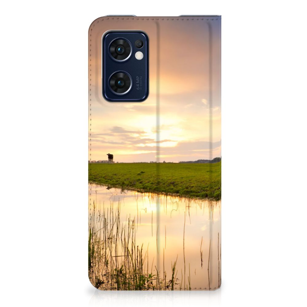 Het levert een idyllisch plaatje op, dit hoesje met een koe en ondergaande zon op de achtergrond. Door een koe buiten te laten lopen en grazen, hebben ze minder kans om ziek te worden. De Koe graast het liefst met soortgenoten, al zijn deze een stukje van de koe op de case verwijderd. Dit levert ook een mooi plaatje op, zoals je kunt zien op dit design hoesje. Deze stand case ziet er strak uit en is voorzien van verschillende uitsparingen. Een OPPO Find X5 Lite | Reno7 5G Hoesje maken met magneet aan de binnenzijde beschermt jouw smartphone overal. Alle zijden zijn bedrukt. Koeien hebben lange graasperioden nodig, afgewisseld door rust- en herkauwperioden. Zo goed als grazen voelt voor koeien, zo lang zal jouw design hoesje meegaan. De binnenkant van de stand case is van TPU, de buitenzijde van leer.
