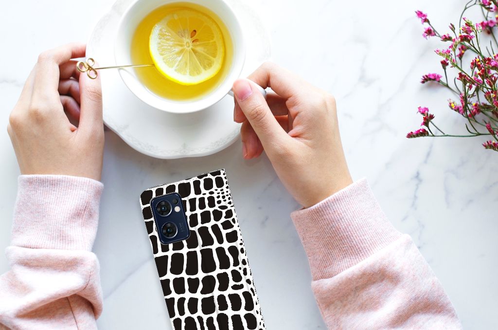Deze stand case met zwarte en witte Slangenprint kunnen wij zeer exclusief noemen. Zeker als je er nog een bijzondere tekst van jezelf aan toevoegt, zoals je eigen naam in een sierletter. Jouw stand case krijgt dan een persoonlijke uitstraling, net nog een beetje specialer dan dit hoesje met zwarte en witte slangenprint. Wat niets afdoet van de exclusiviteit van deze stand case met zwarte en witte slangenprint. Ben jij toe aan een stoer en opvallend OPPO Find X5 Lite | Reno7 5G Hoesje maken? Pak dan dit design met print van slangenhuid als basis. Het stand hoesje met zwarte en witte slangenprint is van PU-leer (buitenzijde) en TPU (binnenzijde) en beschikt over een houder en een standaard. Verder is dit stand hoesje met slangenprint voorzien van een magnetische sluiting aan de binnenkant. Jij bent ervan verzekerd dat jouw smartphone tegen een stootje kan met dit stand hoesje met zwarte en witte slangenprint.