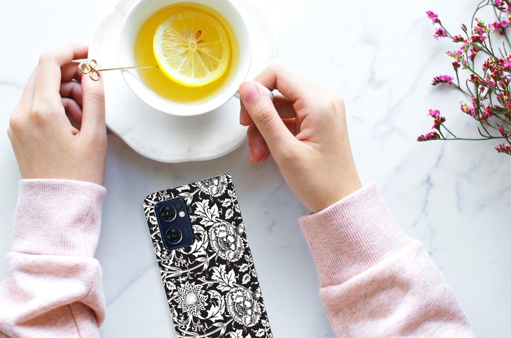 Bloemen raken nooit uit de mode! Een mooie bloemenprint op je telefoonhoesje dus ook niet. Dit ontwerp met mooie, enigszins abstracte bloemen is perfect voor de liefhebber van bloemen die geen felgekleurd hoesje wil. Vanwege de zwarte achtergrond en de witte bloemen heb je toch een opvallend en uniek design in handen. Dit black flowers-ontwerp staat op een Smart Cover voor je OPPO Find X5 Lite | Reno7 5G. Dit populaire smartphonehoesje met het beton-design heeft één vakje voor een pasje of briefgeld en is aan alle zijden bedrukt. Met de standcase zet je je telefoon gemakkelijk neer, zodat je je handen vrij hebt als je bijvoorbeeld een video wilt kijken. De binnenkant van de standcase is van grijs PU-leer. Dat is fijn, omdat je daardoor niet snel vlekken ziet op je hoesje.