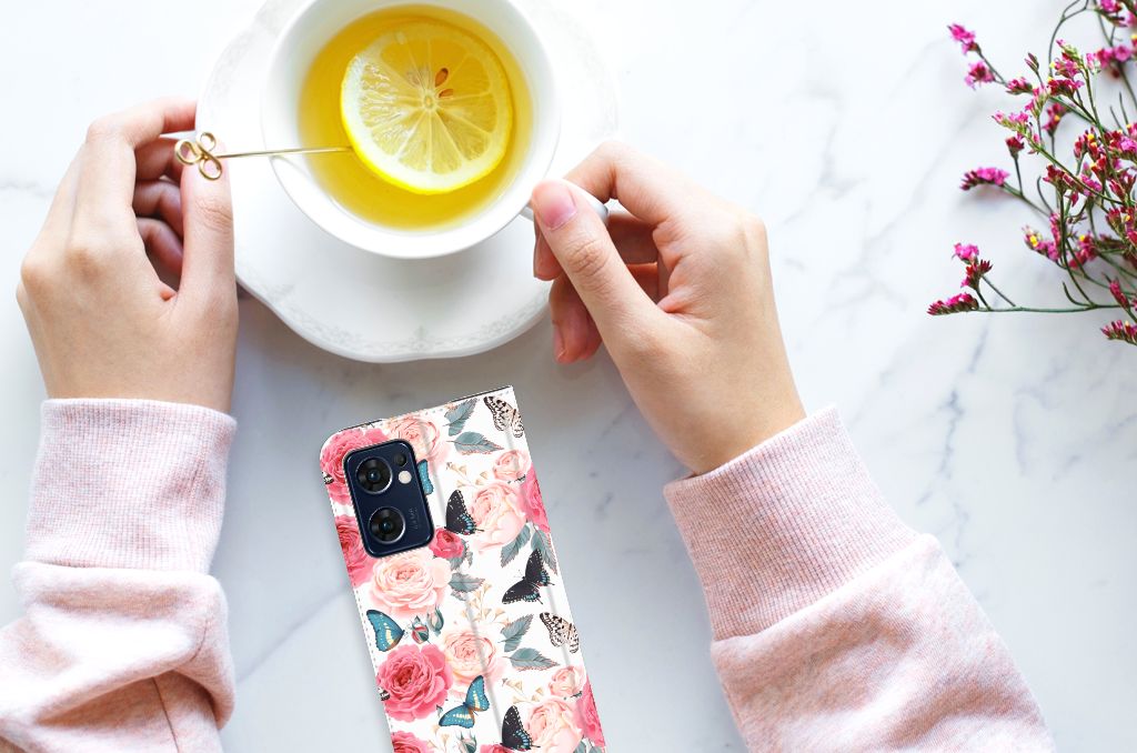 Ben je op zoek naar een uniek telefoonhoesje voor je OPPO Find X5 Lite | Reno7 5G? Dan ben je bij B2C Telecom aan het juiste adres! Speciaal voor jou hebben we dit prachtige Butterfly Roses design in onze collectie hoesjes opgenomen. Het design wordt bedrukt op een Smart Cover en heeft een vakje aan de binnenkant voor een pasje. Het fijne aan dit hoesje is dat je het als standaard neer kunt zetten. Hierdoor geniet je nog meer als je een filmpje aan het kijken bent op je telefoon. Het hoesje wordt afgesloten door magneten aan de binnenkant. Wil je dit design hoesje nog iets extra's geven? Voeg dan gratis je naam of een quote toe! Is dit design hoesje toch niet helemaal wat je zocht? Ontwerp dan zelf een hoesje in ons ontwerpprogramma.