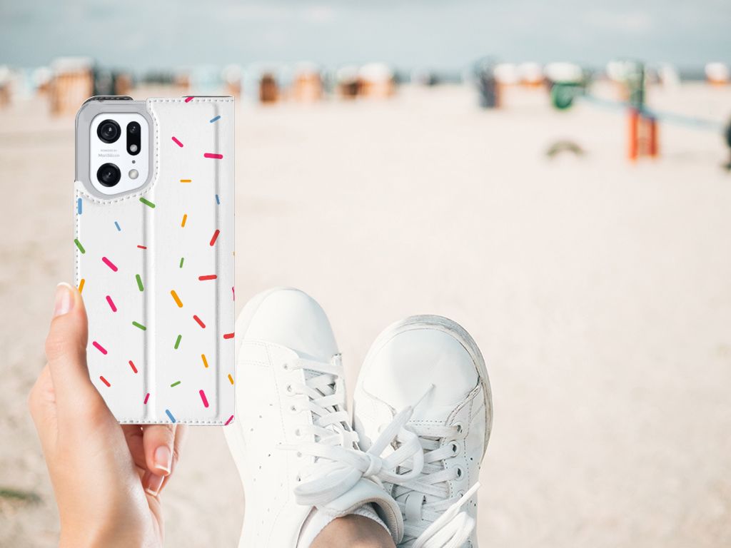 De cartoon met Donut op dit design hoesje geeft jouw smartphone een grappige en vrolijke uitstraling. De OPPO Find X5 Pro Flip Style Cover zorgt ervoor dat je je schouders op zult halen als je telefoon een keer op de grond valt. Omdat er geen schade zal optreden kun jij je weg weer heel makkelijk vervolgen. De grappige Donut Care stand case is een zeer populair product. Allereerst is het nergens anders te krijgen. Het design is namelijk van de hand van onze eigen ontwerper. Daarnaast zal de case jouw smartphone aan alle zijden beschermen. Ook heeft het Donut Care hoesje een vakje aan de binnenzijde en een speciale standaard. Ook kun je je eigen unieke hoesje ontwerpen, met eigen cartoons, foto’s en teksten. De houder aan de binnenzijde van de Donut Care case is van TPU, de buitenzijde van PU leer.