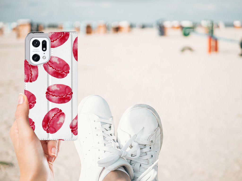 Dit stand hoesje met Pink Macarons is een zeer opvallende bescherming voor jouw smartphone. Macarons zijn Franse koekjes: kleine, rond en luchtig. Ze worden in veel verschillende smaken gemaakt, herkenbaar aan de verschillende kleuren zoals chocolade (donkerbruin), mokka (middenbruin), kersen (rood), pistache (groen), aardbei (roze), framboos (karmijn). Deze kleuren kun je net allemaal zien op dit fraaie design hoesje met roze macarons. Heb je altijd al een OPPO Find X5 Pro Flip Style Cover willen hebben met roze macarons? Grijp dan nu je kans. Deze case heeft zeer veel goede eigenschappen, zoals 1 opbergvakje en een magnetische sluiting aan de binnenkant. Dit design hoesje met roze macarons wordt aan alle zijden bedrukt. De houder aan de binnenkant van het hoesje is van TPU. De case heeft ook een handige standaard.