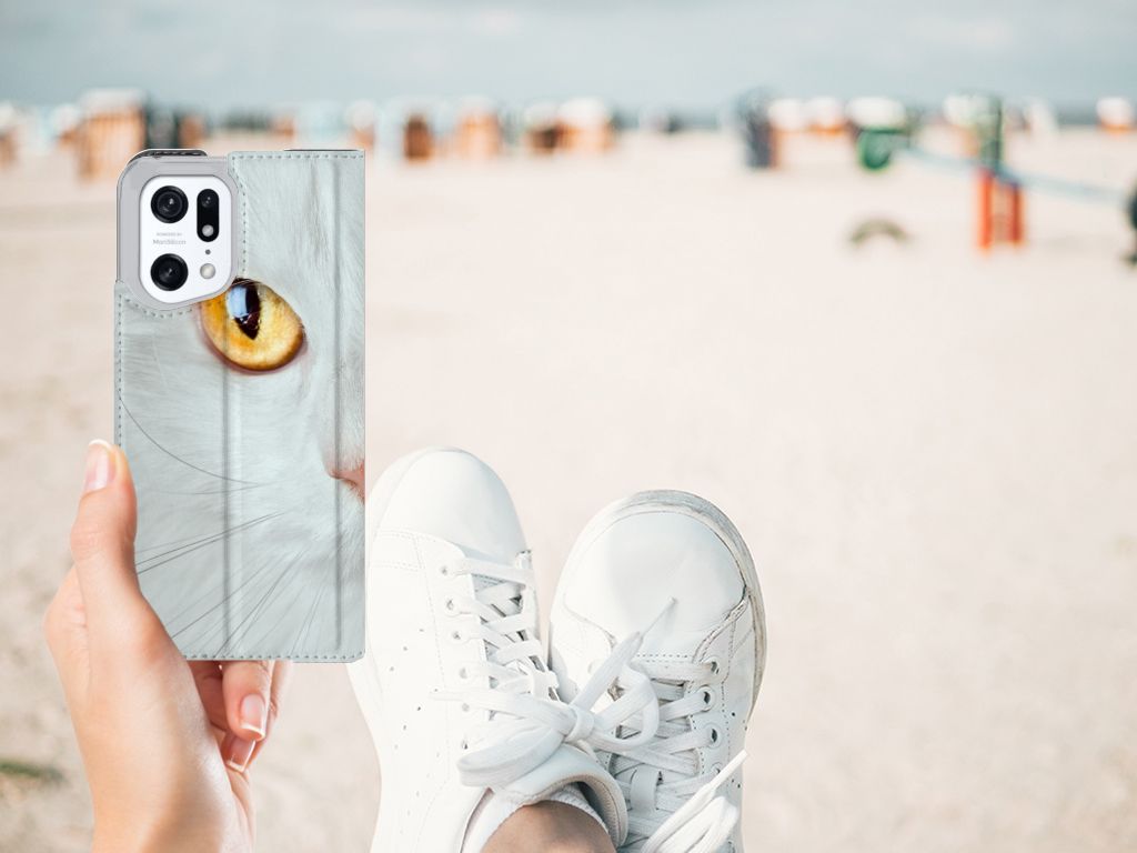 Witte katten zijn natuurlijk extra speciaal, vandaar we een exemplaar op een design hoesje hebben gezet. Een witte kat schijnt trouwens ook slechter te kunnen horen dan katten met een andere kleur. Deze witte kat staat op een zeer prominente wijze op een stand case. Deze stand case met witte kat ziet er geweldig uit en is voorzien van verschillende uitsparingen en een speciale standaard. Een OPPO Find X5 Pro Hoesje maken met witte kat beschermt jouw smartphone perfect. Alle zijden van de case zijn bedrukt. Jouw smartphone wordt erg duurzaam met dit design hoesje. Het TPU aan de binnenzijde is zeer flexibel en het pu-leer oogt chique. Verder heeft de case een houder voor bijvoorbeeld je rijbewijs aan de binnenkant.