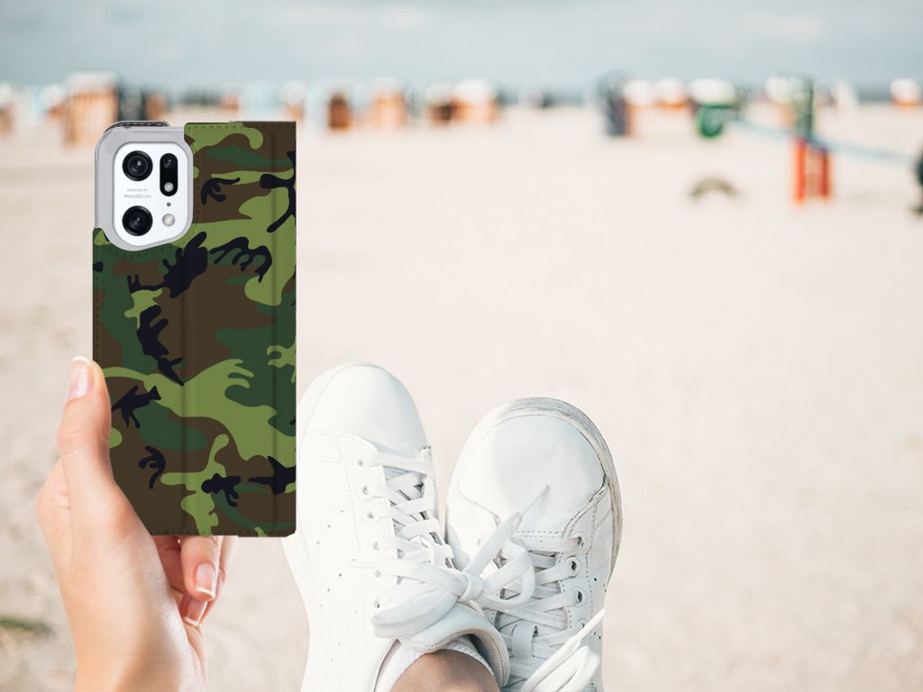 Voel je jezelf verbonden met het leger, dan zal deze OPPO Find X5 Pro Hoesje met Magneet je zeker bevallen. Het design hoesje beschikt namelijk over donkere camouflage kleuren. Deze worden vaak gebruikt door mensen die zich graag willen mengen in hun omgeving. Dit Army Dark hoesje is er dus voornamelijk in kleuren die in de natuur voorkomen, zodat je één wordt met je achtergrond. Beschermt de krijgsmacht volk en vaderland, dit hoesje in donkere camouflage kleuren zal jouw telefoon onder alle omstandigheden schadevrij houden. Met een hoesje in dit soort kleuren zal je niet zo snel opvallen. Wel is het echter een hele stoere case. Het design staat op een stand case. Deze case beschermt jouw telefoon aan alle kanten en beschikt over een 1 opbergvakje en een speciale standaard. Het hoesje wordt afgesloten met een magneet aan de binnenzijde. De houder aan de binnenzijde is van TPU. Alle zijden van de case worden bedrukt met donkere camouflage kleuren.