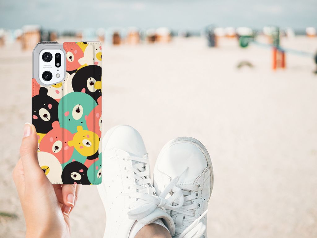 Op dit hoesje vind je een bereschattig ontwerp! Vergeef ons de woordgrap, maar hoe moeten we dit lieve ontwerp anders omschrijven? Op dit knuffelige ontwerp zie je leuke, getekende beertjes in vrolijke kleuren als geel, blauw en roze. Dankzij de contrasterende witte en zwarte beertjes vallen de felle kleurtjes nog meer op. Al met al is dit Magnet Case voor de OPPO Find X5 Pro een perfect hoesje voor de knuffelberen onder ons. Dit populaire smartphonehoesje met het Bears-design heeft één vakje voor een pasje of briefgeld en is aan alle zijden bedrukt. Met de standcase zet je je telefoon gemakkelijk neer, zodat je je handen vrij hebt als je bijvoorbeeld een video wilt kijken. De binnenkant van de standcase is van grijs PU-leer. Dat is fijn, omdat je daardoor niet snel vlekken ziet op je hoesje.