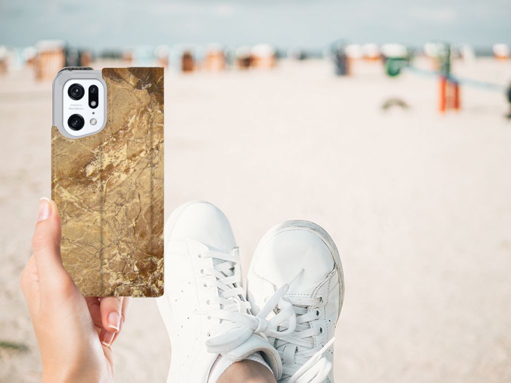 Dit design hoesje met Marmer in lichtbruine kleur is voor de artistiekelingen onder ons. De Grieken en Romeinen wisten het marmer al te waarderen door het in de bouw toe te passen. Naast het witte marmer zijn de diverse soorten marmer in een gevarieerde kleurensamenstelling te krijgen. We hebben verschillende mooie kleuren op design hoesjes gezet, zoals in dit geval het lichtbruine marmer. Dit is een OPPO Find X5 Pro Standcase met marmer in lichtbruine kleur. Het marmer wordt bedrukt op alle zijden van een stand case, die beschikt over 1 vakje voor een pasje en een magnetische sluiting aan de binnenzijde. Verder heeft de hoes een houder van TPU. Door de rijkdom aan kleuren en varianties in afwerking kunnen ontwerpers met marmer schitterende architectonische projecten realiseren. Wij hebben hetzelfde gedaan en onze ontwerper veel vrijheid geboden. Het resultaat zie je terug in deze stand case met lichtbruin marmer, dat de ideale bescherming voor jouw smartphone is.