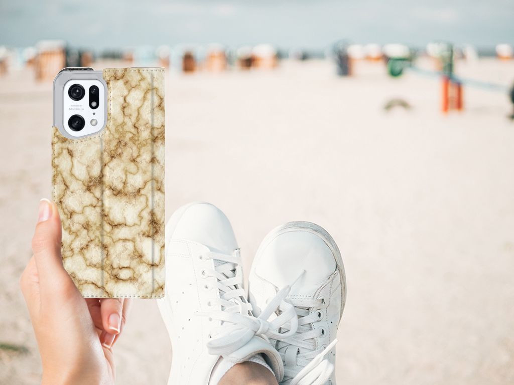 Deze OPPO Find X5 Pro Standcase met Marmer Goud is het waard om een blokje voor om te rijden. Dit is overigens niet nodig. Als je het hoesje met goud marmer nu bestelt heb je het zeer snel in huis. Je kunt er bij wijze van spreken thuis op gaan zitten wachten. Je hebt diverse soorten marmer. We hebben enkele fraaie kleuren op onze hoesjes gezet, zoals in dit geval het gouden marmer. Het gouden marmer wordt bedrukt op alle zijden van de stand case, die beschikt over een vakje voor pasjes of briefgeld en een magnetische sluiting aan de binnenzijde. Verder heeft de case met goud marmer een houder van TPU. De rijkheid aan kleuren en variaties in afwerking is een schitterende eigenschap van marmer. Dit stand hoesje met goud marmer heeft ook veel schitterende eigenschappen en is de ideale bescherming voor jouw smartphone.