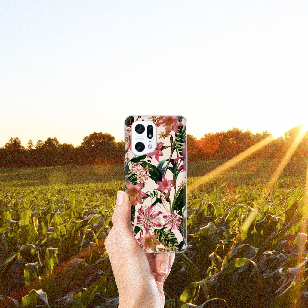 OPPO Find X5 Pro Portemonnee Hoesje Flowers Pink DTMP