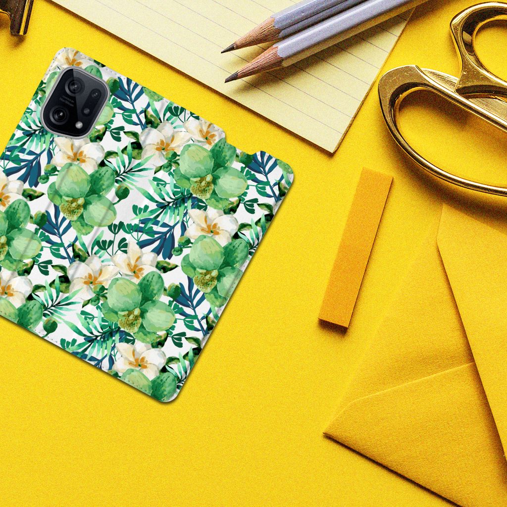 Ben je op zoek naar een uniek telefoonhoesje voor je OPPO Find X5? Dan ben je bij B2C Telecom aan het juiste adres! Speciaal voor jou hebben we dit prachtige Orchidee Groen design in onze collectie hoesjes opgenomen. Het design wordt bedrukt op een Smart Cover en heeft een vakje aan de binnenkant voor een pasje. Het fijne aan dit hoesje is dat je het als standaard neer kunt zetten. Hierdoor geniet je nog meer als je een filmpje aan het kijken bent op je telefoon. Het hoesje wordt afgesloten door magneten aan de binnenkant. Wil je dit design hoesje nog iets extra's geven? Voeg dan gratis je naam of een quote toe! Is dit design hoesje toch niet helemaal wat je zocht? Ontwerp dan zelf een hoesje in ons ontwerpprogramma.