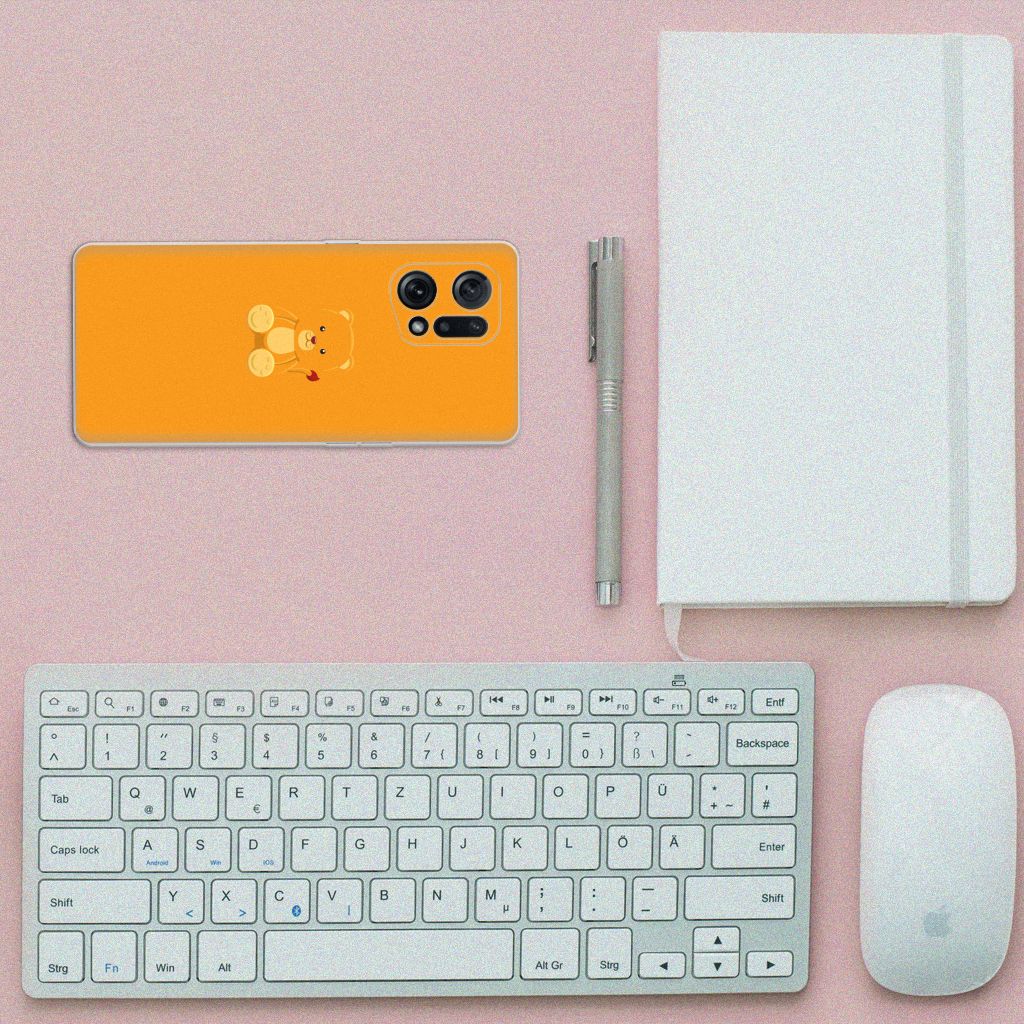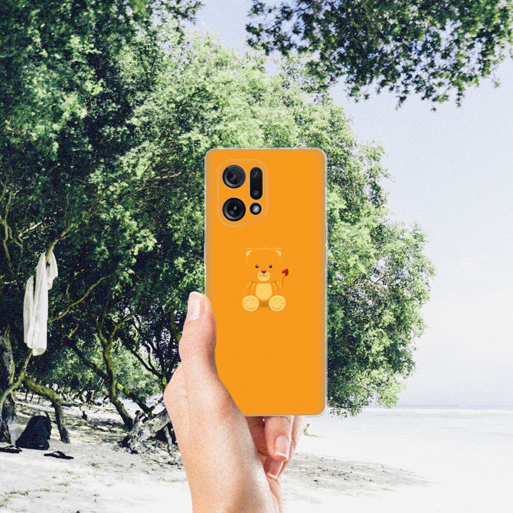 Dit vrolijke teddybeertje zou je het liefst willen knuffelen. Dat wordt lastig, op een telefoonhoesje. Maar dat betekent niet dat dit design niet evengoed onwijs schattig is. Het ontwerp is vanwege de oranje achtergrondkleur evengoed subtiel. Dit Baby Beer-design is perfect voor de knuffelberen onder ons. Dit design staat op een Telefoonhoesje met Naam voor je OPPO Find X5. TPU is flexibel en onbreekbaar. Zo is je telefoon aan de achterkant en de randen heel goed beschermd. De case is aan de bovenkant bedrukt, de randen blijven transparant. Het TPU-hoesje is perfect te combineren met een screenprotector, zo zijn je telefoon en je beeldscherm perfect beschermd.