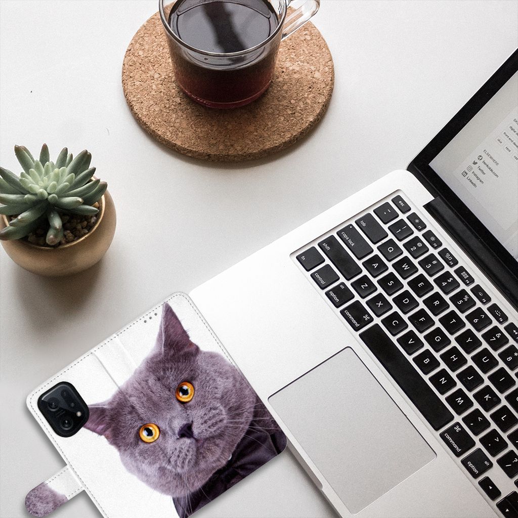 Ben jij ook dol op katten? Dan is dit OPPO Find X5 telefoonhoesje misschien wel wat voor jou. De kat die je ziet op dit hoesje is een bijzondere verschijning met zijn paarse vacht en oranje ogen. Maar misschien heb je zelf wel een kat en wil je die liever op jouw OPPO Find X5 Telefoonhoesje met Pasjes terugzien? Dat is ook mogelijk! Je kunt jouw boekhoesje helemaal zelf ontwerpen met een foto naar keuze. Daarnaast zou je er zelfs de naam van jouw kat bij kunnen zetten of een ander stukje tekst.