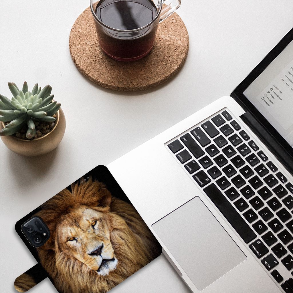 OPPO Find X5 Telefoonhoesje met Pasjes en met magnetische sluitclip Leeuw