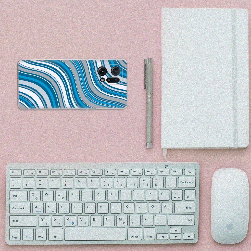 Zeer cool, dit hoesje met vooral blauwe kleuren, die in een golvende beweging jouw telefoon van een mooie uitstraling voorzien. Tijdens een zonnige vakantie aan zee is jouw smartphone perfect beschermd met dit telefoonhoesje. Het design Waves Blue van dit smartphone hoesje doet lichtjes denken aan een lolly, waarmee je een klein kind zeer blij maakt. Jouw OPPO Find X5 zal er ook zeer vrolijk uitzien samen met dit design hoesje. De witte en grijze kleuren staan in mooi contrast met het blauw, waardoor de uitstraling van deze accessoire zeer mooi is. Ook voor andere kleuren kun je natuurlijk uitstekend terecht in ons assortiment. Het design staat op een TPU bumper. Dit hoesje wordt alleen aan de bovenkant bedrukt en is zeer flexibel. De randen van het hoesje blijven transparant.