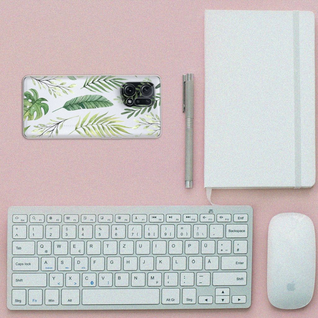 Je voelt je verbonden met de natuur als je kiest voor deze OPPO Find X5 TPU Case met print Leaves. De print bestaat uit verschillende groene bladeren en dit zorgt voor een fraai decoratief geheel. Met dit patroon van groene bladeren creëer je een frisse uitstraling voor jouw smartphone. Jij doet er verstandig aan om je telefoon te beschermen met dit design hoesje met groene bladeren, die staan op een tpu case. Dit tpu hoesje kenmerkt zich onder meer door de opstaande randen aan de voorzijde, waardoor bij een val van de smartphone het scherm de grond niet raakt. Voel jij jezelf gezond met een beeld van groene bladeren, dan is deze tpu case met print een uitstekende optie. Het beschermt jouw telefoon aan de achterkant en zijkanten zeer goed. Het TPU is zeer flexibel en onbreekbaar. De zijkanten van de case blijven transparant. Kijk ook eens naar onze andere hoesjes met bladeren of misschien maak je zelf wel gewoon liefst je eigen hoesje met eigen foto’s van bladeren.