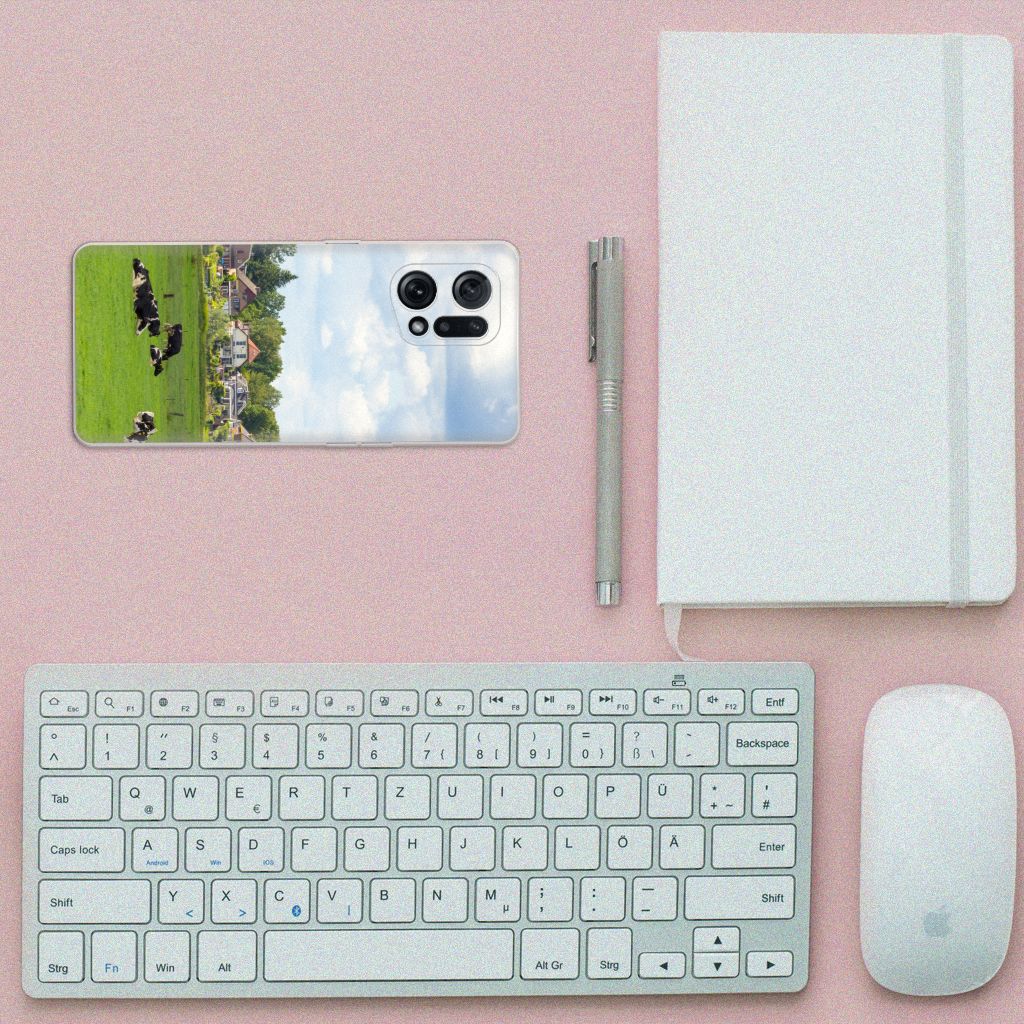Een koe moet goed verzorgd worden. Door ze buiten te laten lopen en grazen, hebben ze minder kans om ziek te worden. De koe is een kuddedier en graast het liefst met soortgenoten. Dit levert ook mooie plaatjes op, zoals je kunt zien op dit design hoesje met Koeien. Dit smartphone hoesje met koeien ziet er super strak uit en is voorzien van verschillende uitsparingen. Een OPPO Find X5 TPU Hoesje met grazende koeien beschermt jouw smartphone vooral aan de achterkant en zijkanten. De zijkanten zijn transparant, de rest van het hoesje is bedrukt. Koeien hebben graasperioden van ongeveer een uur. Deze worden afgewisseld worden door rust- en herkauwperioden. Ze herkauwen het liefst liggend, behalve wanneer het regent. Zo goed als grazen voelt voor koeien, zo duurzaam zal jouw smartphone worden met dit design hoesje. Het TPU is schokabsorberend en zeer flexibel. Bovendien is het niet te breken. De TPU case past altijd in je broekzak en is zeer handig.